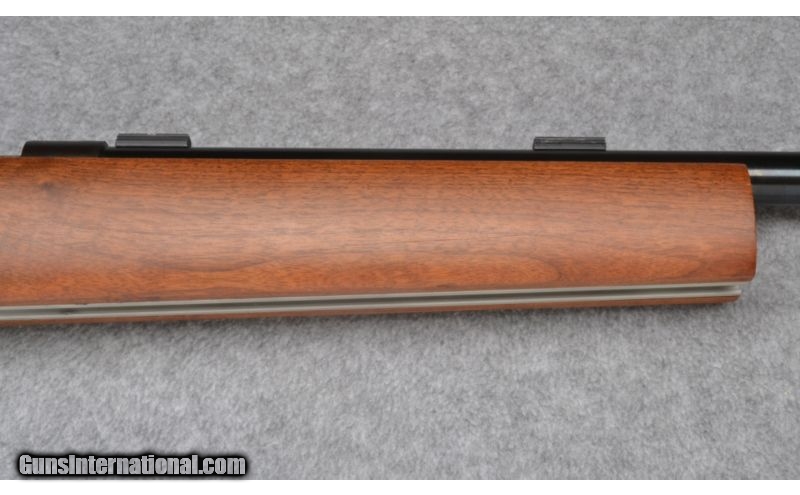 Description: Excellent throughout showing little to no use. No box. SOLD Manufacturer: S/N GM019XXX Caliber Info: .22 LR Metal Condition: Excellent Wood Condition: Excellent Bore Condition: Excellent Barrels: 25" Heavy Target Triggers: Factory Stock: Uncheckered Walnut Pistol Grip Stock Dimensions: 13 1/2" LOP with Spacers Fore End: Uncheckered Walnut Target Butt Pad: Black Rubber Weight: 10 LB Sights: None - Grooved Receiver with Target Scope Blocks Item Location: Wheeling, WV |