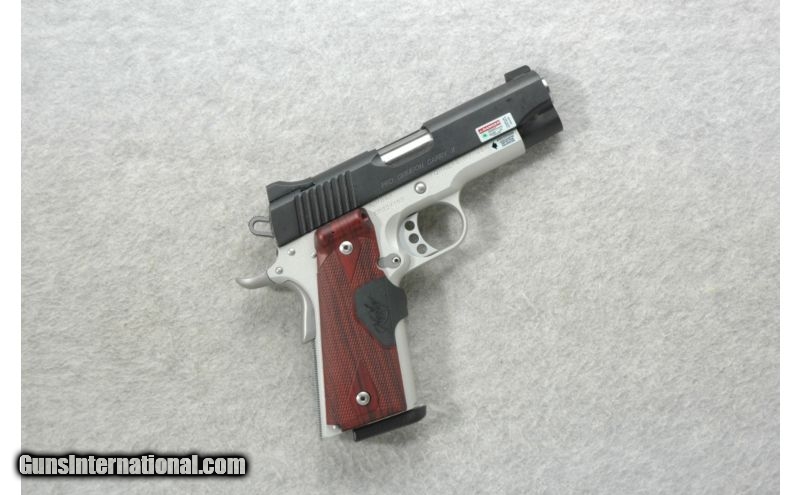 Description: SOLD Caliber Info: .45 ACP Chambers: 7 shot magazine. Metal Condition: Excellent Bore Condition: Very good. Barrels: 3.75 inches. Matte black slide. Stock: Diamond checkered panels with green Crimson Trace laser. Two tone frame and slide. Weight: 30 oz. Sights: Blade front. Notch rear. Extras: With Box Item Location: Richfield, WI |
