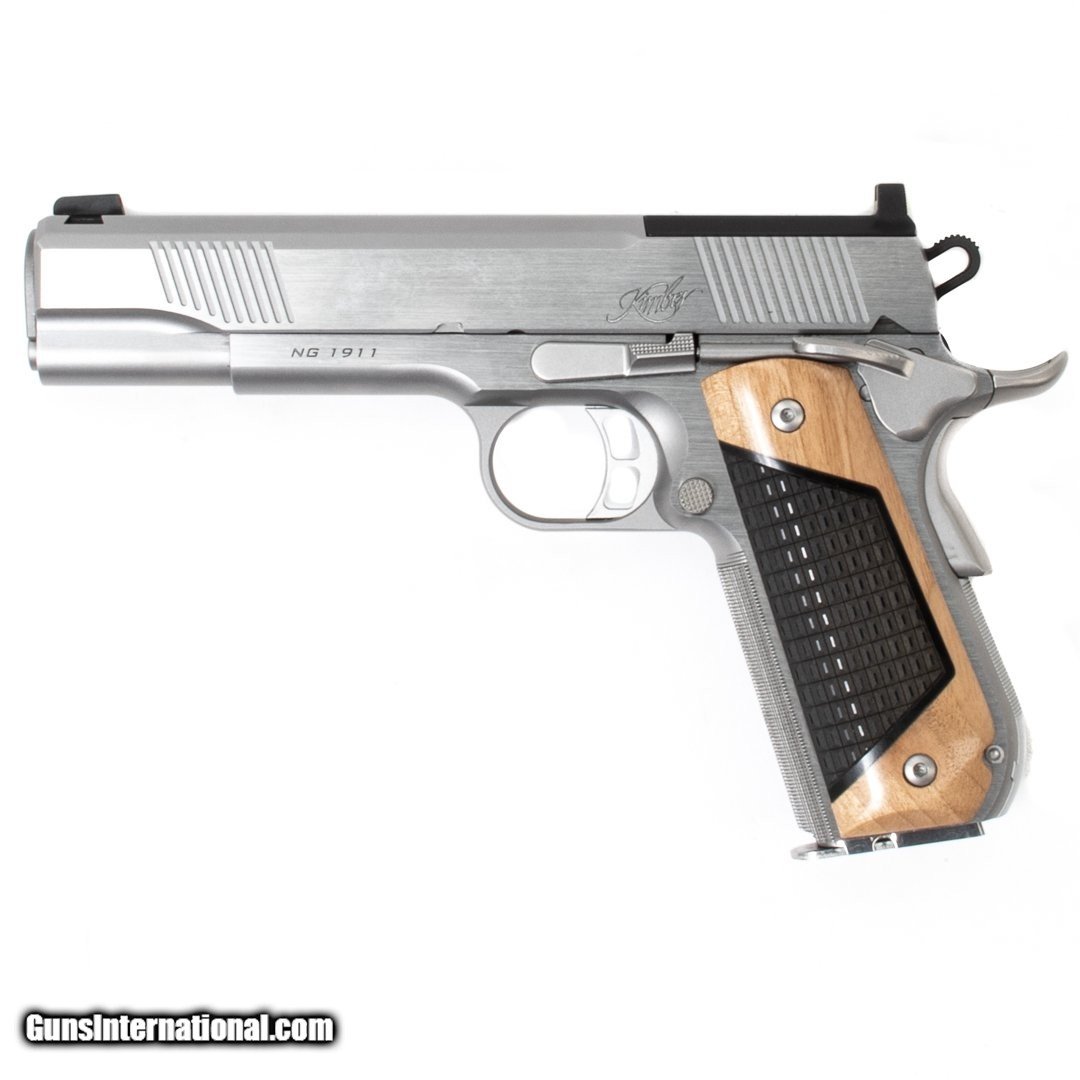 Description: Guns Listing ID: 577121 This Kimber NG 1911 is a \"Next Generation\" optic-ready model. It features a C&H optic plate, an ambidextrous thumb safety and light-colored black walnut with G10 inlay grips. Purchase includes the original case, manual, and two 9-round magazines. Get the best bang for your buck when you get a Certified Used Firearm . When you see the Certified Used stamp on any of our firearms, you can be confident that you‚re getting exactly what you want – a gun only in very good to excellent condition and held to the highest quality standard. All Certified Used Guns come with a ‚no questions asked‚ return policy . SOLD Manufacturer: KIMBER Model: NG 1911 Caliber Info: 9MM LUGER (9X19 PARA) Condition: Used - Certified Barrels: 5.00" BARREL Action: SEMI AUTOMATIC Finish: stainless Weight: 0.8 |