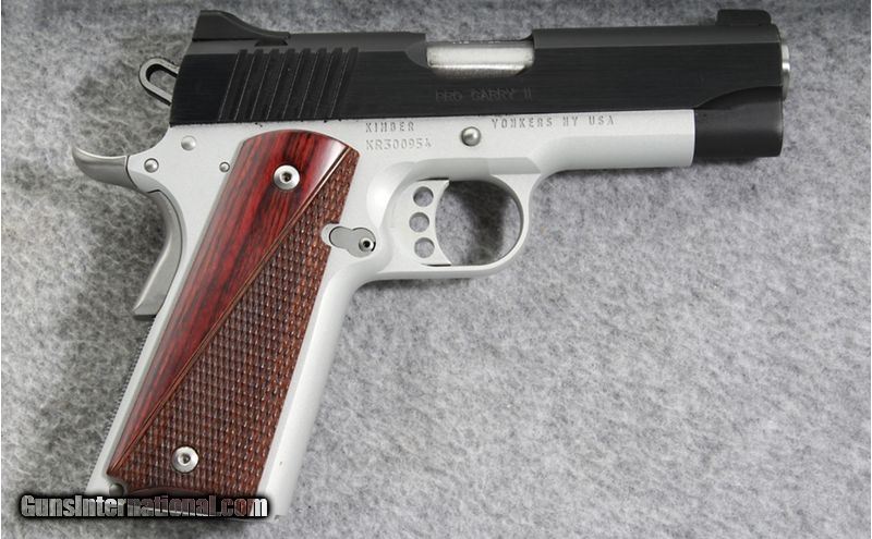 Description: A nice Kimber Pro Carry II .45 auto with a 4 inch barrel in two-tone. .45 Auto SOLD Metal Condition: Excellent with wear Wood Condition: Excellent with wear Bore Condition: Bright and Shiny Barrels: 4 inches Triggers: Single action auto Weight: 1 lbs 12 oz Sights: 3-dot fixed Item Location: Gonzales, LA |