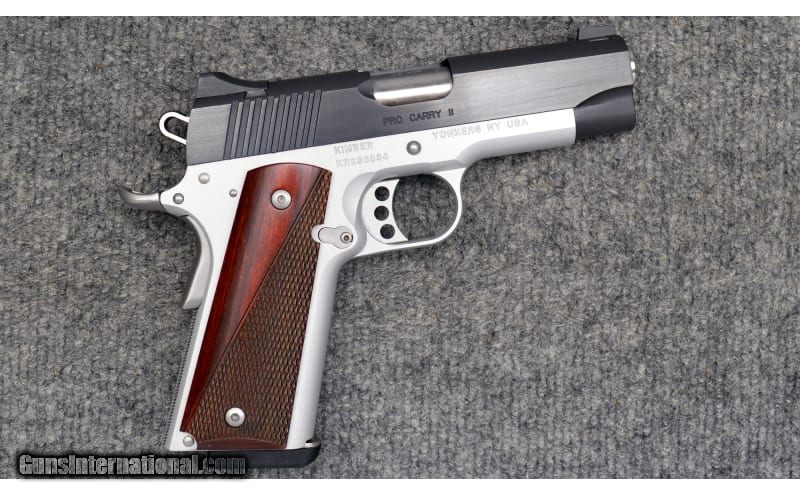 Description: For your consideration, a Kimber Pro Carry II chambered in .45 Auto. Features include rosewood grips, an extended thumb safety, an adjustable trigger, and a commander hammer. .45 Auto SOLD Metal Condition: Excellent Wood Condition: Excellent Bore Condition: Excellent Barrels: 4 Triggers: Serrated Face Weight: 1.75 lbs Sights: Iron Sights Item Location: Hamburg, PA |