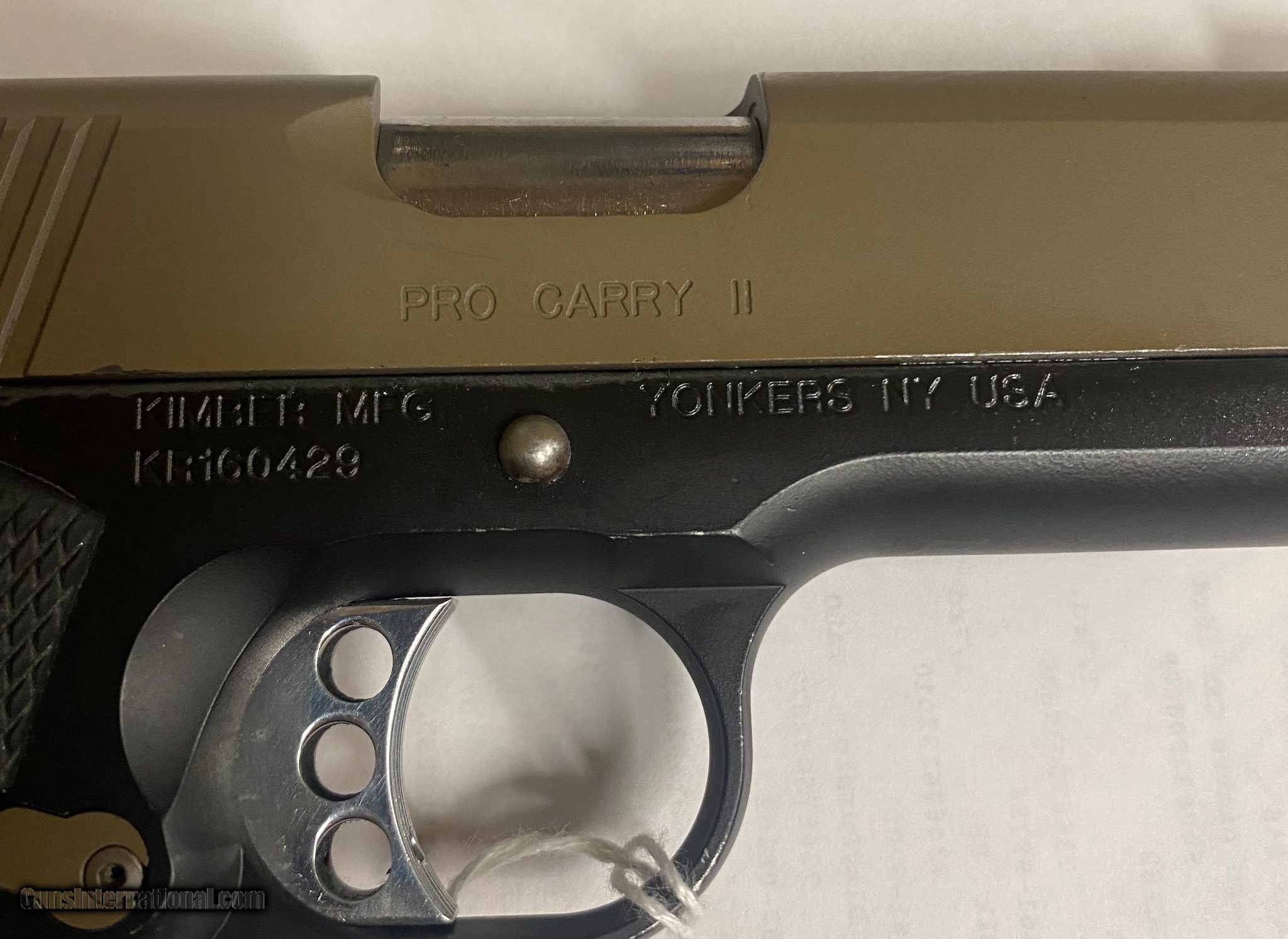 Description: Guns Listing ID: 545295 Good Condition Kimber Pro Carry II 45 Acp 4” Tan Cerakote SOLD Manufacturer: KIMBER Model: PRO CARRY II Caliber Info: .45 ACP Condition: Used - Non-Certified Barrels: 4 BARREL Finish: CERAKOTE FDE |