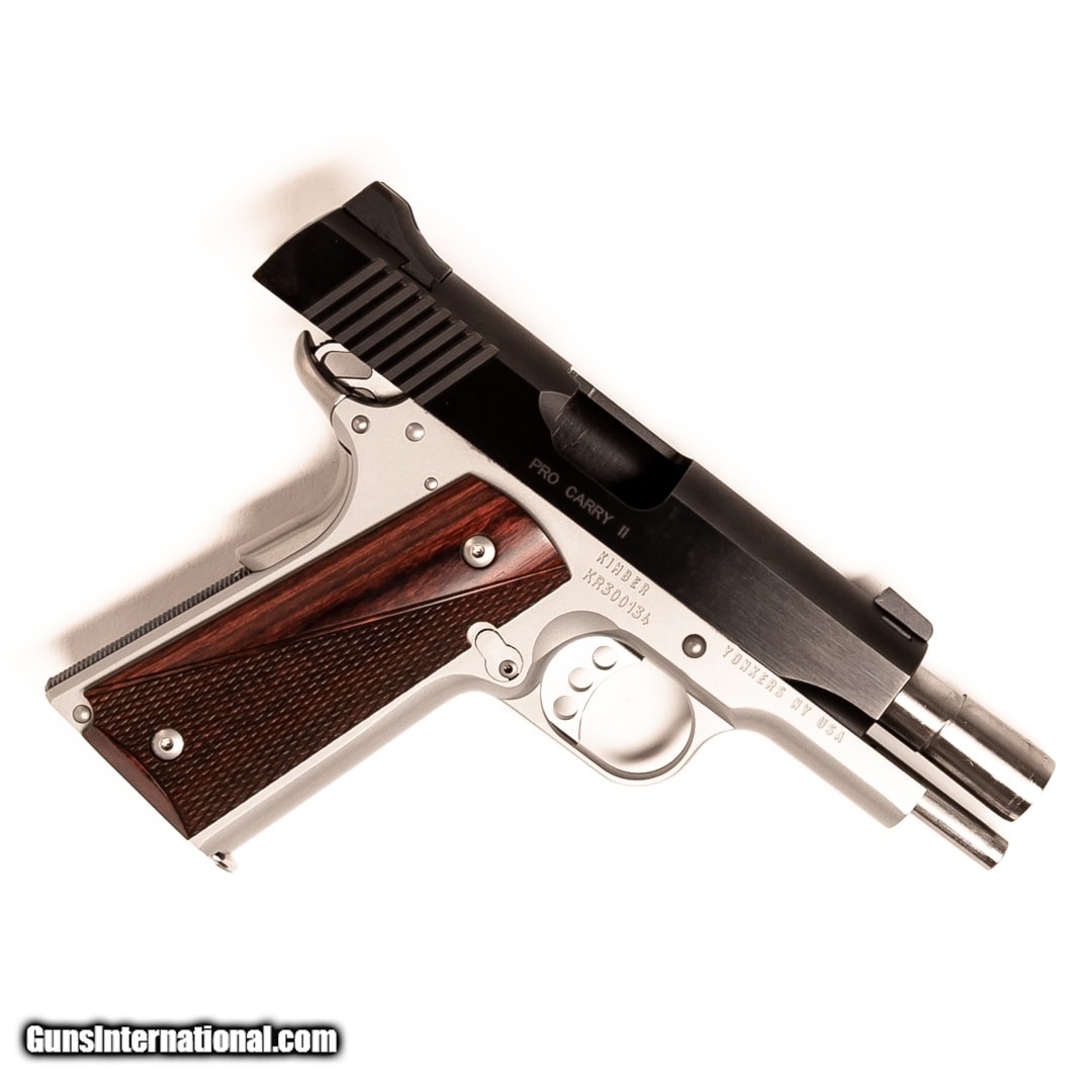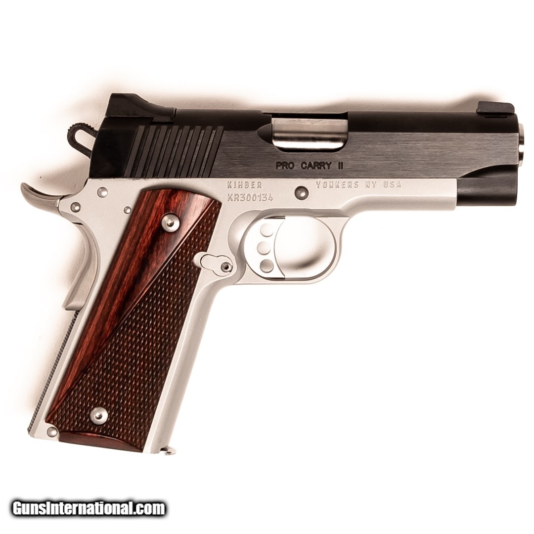 Description: Guns Listing ID: 641334 A hallmark of Kimber quality, this Pro Carry II is a 1911-style pistol that delivers dependability, accuracy, and no-nonsense features with each part manufactured to the tightest tolerances and hand-fit for unparalleled quality. Just as the name suggests, the Pro Carry II is well-suited for concealed carry and personal defense. This Pro Carry II comes with the original box, manual, and one 8-round magazine. SOLD Manufacturer: KIMBER Model: PRO CARRY II Caliber Info: .45 ACP Condition: Used - Certified Barrels: 4 barrel Finish: TWO-TONE |