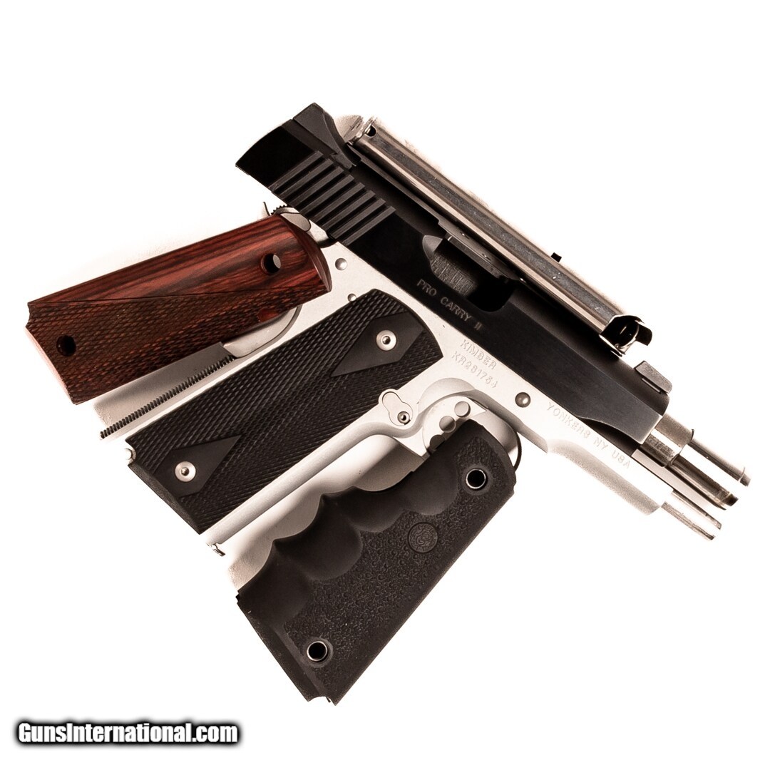 Description: Guns Listing ID: 734183 A hallmark of Kimber quality, this Pro Carry II is a 1911-style pistol that delivers dependability, accuracy, and no-nonsense features with each part manufactured to the tightest tolerances and hand-fit for unparalleled quality. Just as the name suggests, the Pro Carry II is well-suited for concealed carry and personal defense. This Pro Carry II features black-out sights. Purchase includes the original case, manual, two 7-round magazines, a bushing tool, extra rosewood grip panels, and a Hogue rubber grip. Get the best bang for your buck when you get a Certified Used Firearm . When you see the Certified Used stamp on any of our firearms, you can be confident that you’re getting exactly what you want – a gun only in very good to excellent condition and held to the highest quality standard. All Certified Used Guns come with a ‘no questions asked’ return policy . PLUS, ALL CERTIFIED USED GUNS SHIP FREE! SOLD Manufacturer: KIMBER Model: PRO CARRY II Caliber Info: .45 ACP Condition: Used - Certified Barrels: 4 barrel Finish: TWO TONE BLACK AND STAINLESS |