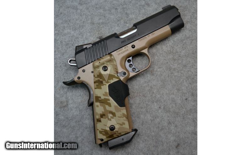 Description: Excellent overall condition Pro Covert II with minor finish wear, mainly on grip safety and exterior of barrel. Crimson Trace laser grips installed. This firearm comes with the factory case and 3 magazines. SOLD Caliber Info: .45 ACP Metal Condition: Excellent with minor finish wear, mainly on grip safety and exterior of barrel Bore Condition: Excellent Barrels: 4" Barrel Triggers: Single action Stock: Desert camo Crimson Trace grips Sights: Front and rear fixed low profile night sights, Crimson Trace laser grips Item Location: Christiana, DE |