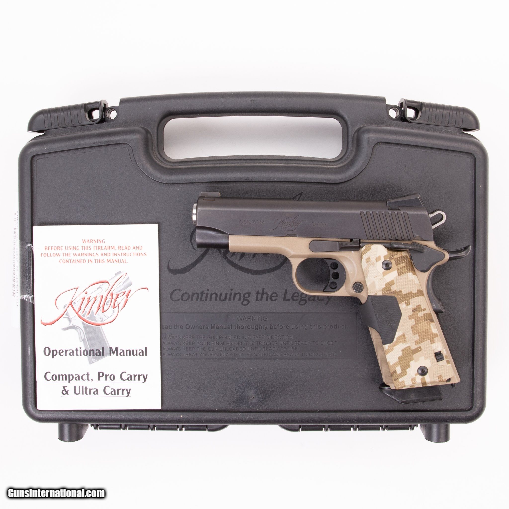 Description: Guns Listing ID: 463406 This Kimber Pro Covert II is from the Custom Shop. The action is remarkably smooth and the trigger is immaculate. Plus, the two-tone slide & frame finish with the Desert MARPAT grips looks great. If you‚‚re looking for a general-purpose sidearm that shoots as good as it looks, this is the one for you. 1-7 round magazine, the original case, and user-manual are included. Get the best bang for your buck when you get a Certified Used Firearm . When you see the Certified Used stamp on any of our firearms, you can be confident that you’re getting exactly what you want – a gun only in very good to excellent condition and held to the highest quality standard. All Certified Used Guns come with a ‘no questions asked’ return policy . PLUS, ALL CERTIFIED USED GUNS SHIP FREE! SOLD Manufacturer: KIMBER Model: PRO COVERT II CUSTOM SHOP Caliber Info: .45 ACP Condition: Used - Certified Barrels: 4.00 Action: SEMI AUTOMATIC Finish: TWO TONE Weight: 1.8 |