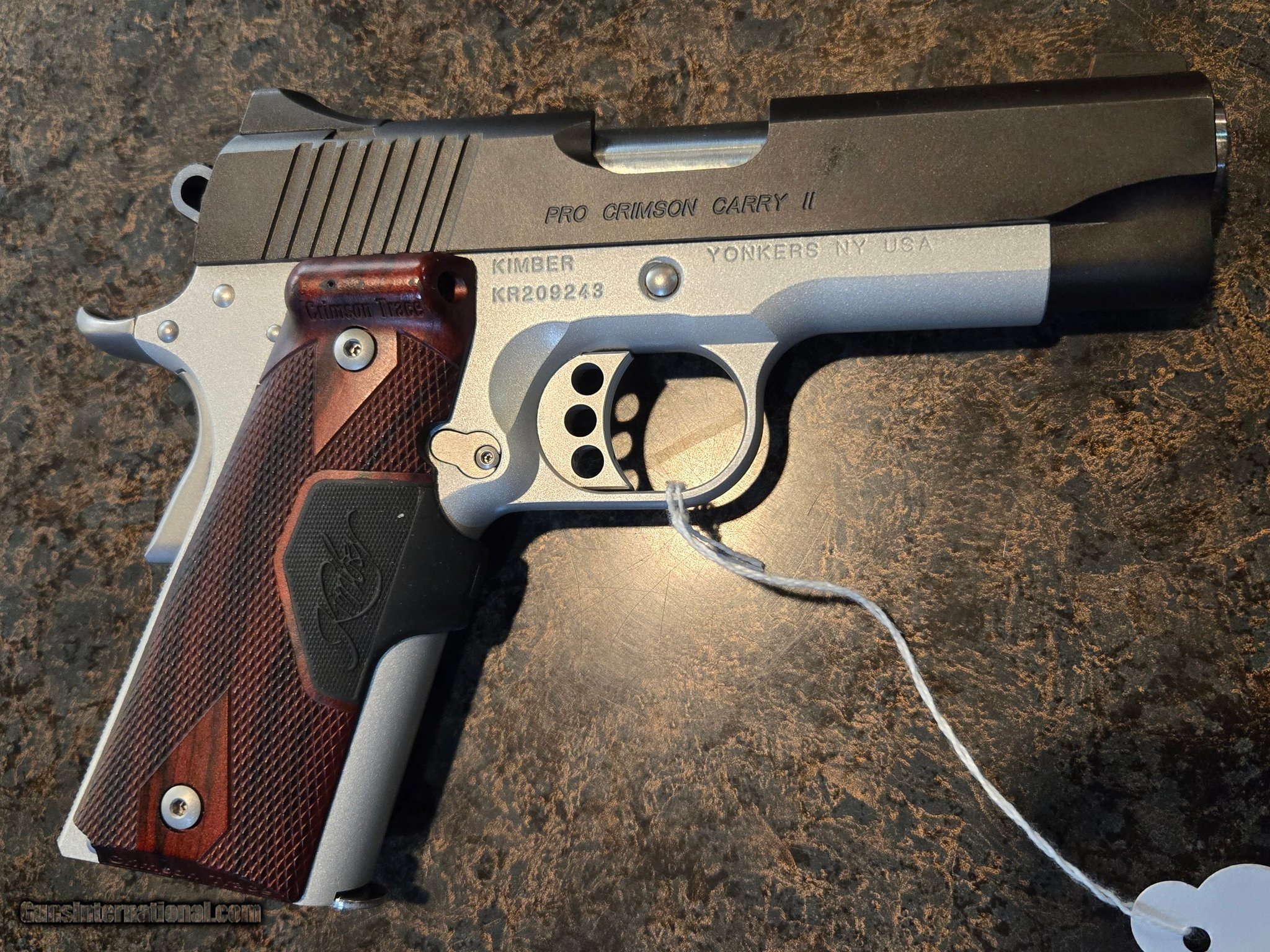 Description: Guns Listing ID: 581584 EXCELLENT CONDITION AS PICTURED WITH GREEN LASER GRIPS. Model Overview Manufacturer: Kimber Manufacturing, Inc. Model: Pro Crimson Carry II (with GRLG = “Grips, Laser, Red, LG") Type: Semi-automatic pistol Action: Single-action (1911-style) Caliber: .45 ACP (standard for this model) Frame Size: “Pro" frame — compact 1911 (4\" barrel) Frame Material: Lightweight aluminum alloy (silver finish) Slide Material: Steel (matte black finish) ?? Key Features Barrel Length: 4 inches Overall Length: Approx. 7.7 inches Weight (empty): About 28 ounces (lighter than full-size 1911) Magazine Capacity: 7 rounds (standard .45 ACP single-stack mag) Sights: Low-profile fixed sights Grips: Crimson Trace Laser grips (integrated GREEN laser, activation on front strap) Finish: Two-tone — matte silver frame / matte black slide Trigger: Aluminum, factory-set at approximately 4–5 lbs ?? Description The Pro Crimson Carry II is part of Kimber’s “Carry" line of 1911s, designed for defensive carry while maintaining traditional 1911 ergonomics. The “Pro" designation indicates a Commander-size frame (full grip, shorter 4-inch barrel), making it more compact for concealment yet very shootable. The Crimson variant includes factory Crimson Trace Lasergrips, adding quick target acquisition in low light. Manufacturer: KIMBER Model: PRO CRIMSON CARRY II Condition: Used - Non-Certified Action: SEMI AUTOMATIC Price: $899.99 Contact Seller |