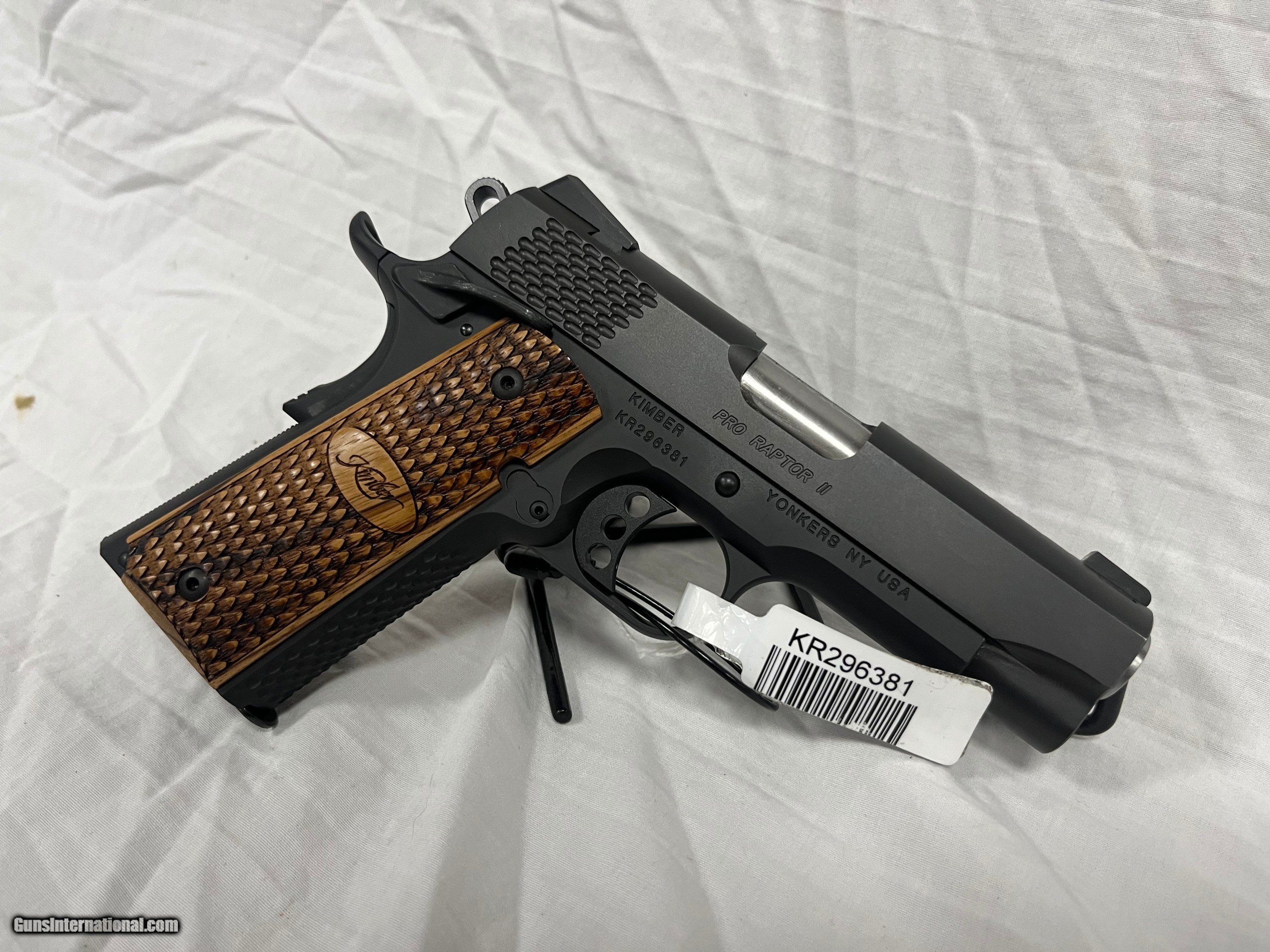 Description: This is a new item. It is a Kimber Pro Raptor II. Please call with any questions. If you are interested in purchasing this item, please give us a call. Please have the "Seller #" and/or "Guns International #" ready along with the contact information for the FFL you'd like the item shipped to. For Sale from First State Firearms & Accessories AKA The Gun Shop in New Castle, DE. Shipping is $25.00. Includes $100.00 in shipping insurance. Additional insurance available at buyer's expense and request. SOLD Handgun Caliber: .45 ACP (.45 Auto) Manufacturer: Kimber Model: Raptor Pro II Condition: new Triggers: Aluminum, match grade Factory setting (approximate pounds): 4.0 - 5.0 Sights: Tactical Wedge tritium night sights Radius (inches): 5.7 |