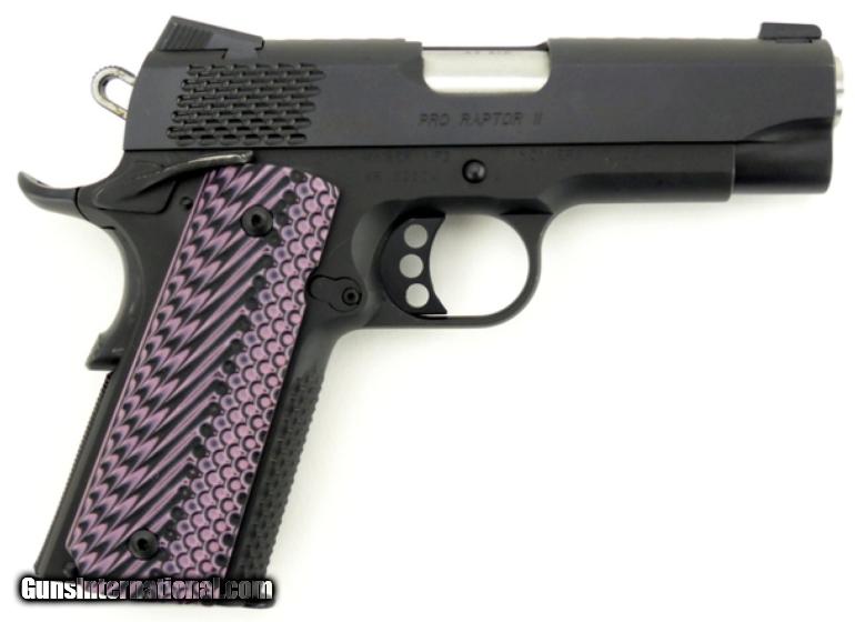 Description: Kimber Pro Raptor II .45 ACP caliber pistol. Lady Raptor with pink VZG10 grips in excellent condition. SOLD |