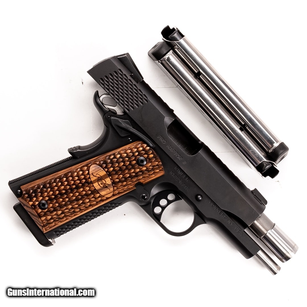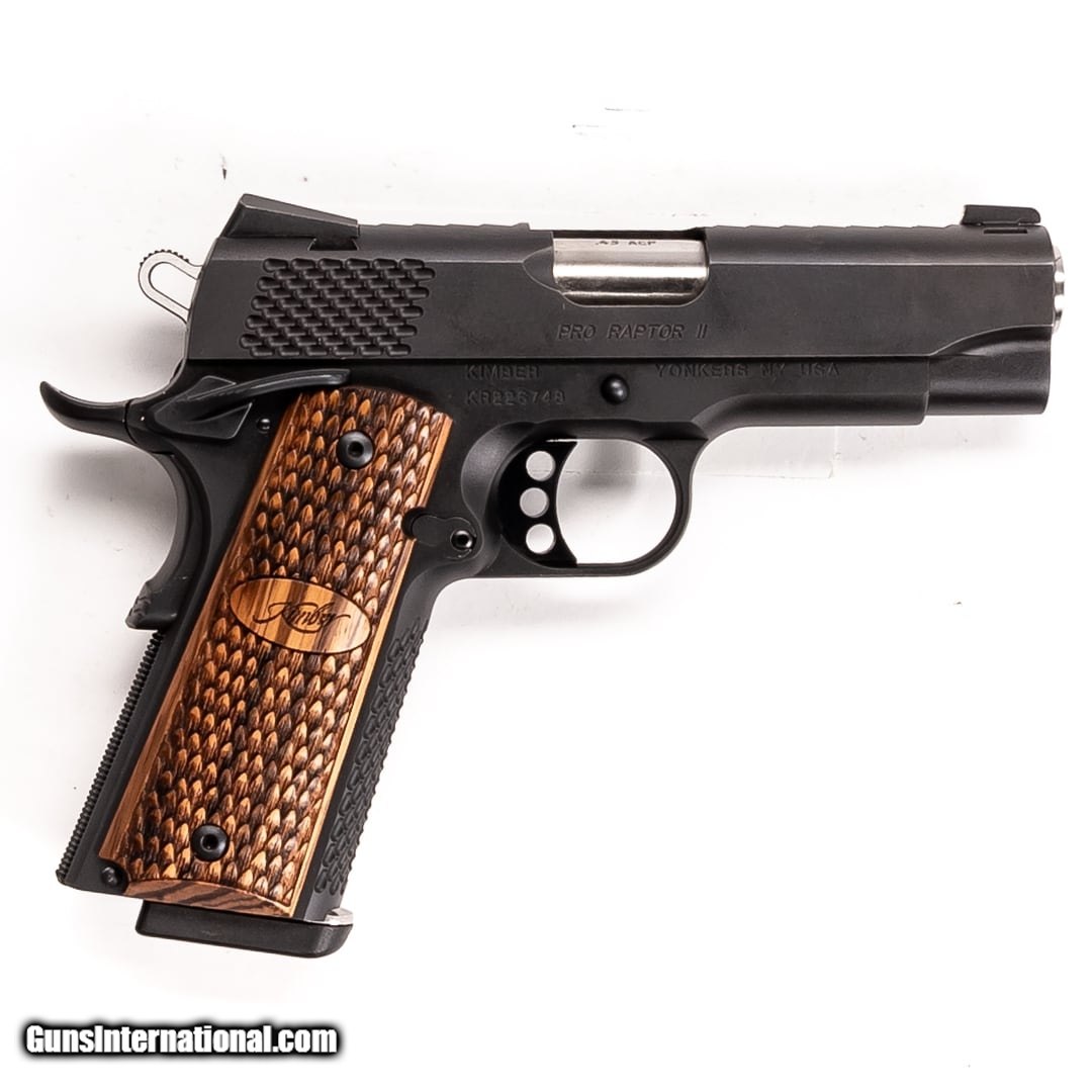 Description: Guns Listing ID: 265142 The Kimber Raptor series earned its name with its aggressive slide and frame serrations and special scaled texturing accents. This model is a Pro Raptor II and based on John Browning's original 1911 design. Premium quality, accurate, and dependable, this handgun is a fine example of Kimber's drive for excellence. This pistol is in very good condition. Purchase includes all of the original paperwork, a lock, and three 8-round 45 ACP magazines. SOLD Manufacturer: KIMBER Model: PRO RAPTOR II Caliber Info: .45 ACP Condition: Used - Certified Barrels: 4 BARREL Finish: BLACK |