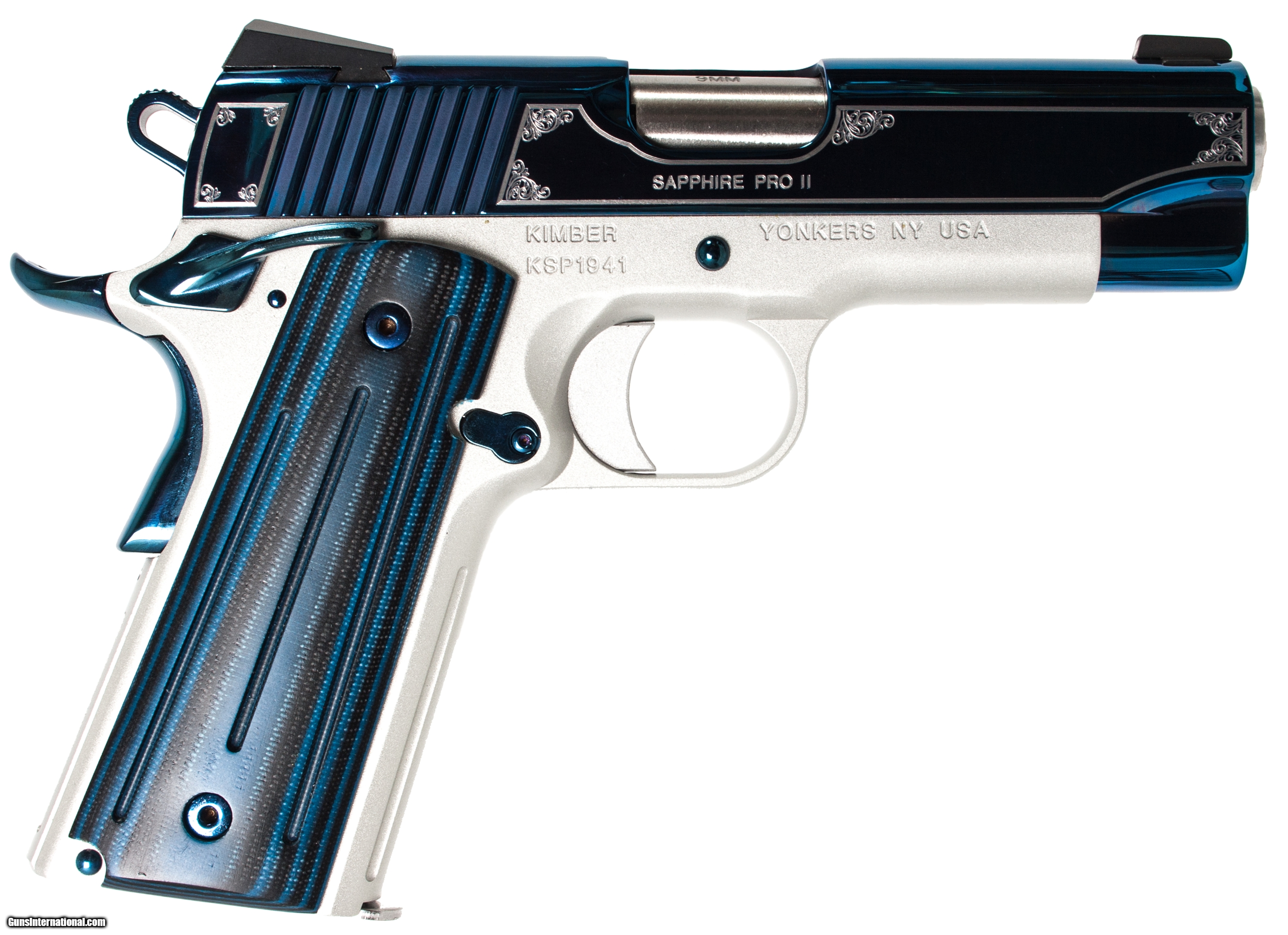 Kimber Pro Sapphire II chambered in 9 mm with a 4 inch barrel Kimber night sights and the original case. This gun is in excellent condition and is covered by Dury's Lifetime Warranty.