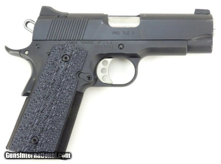 Description: Kimber PRO TLE II .45 ACP caliber pistol. 4” all steel model with night sights and G10 grips in excellent condition. SOLD |