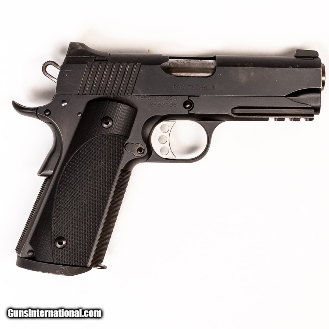 Description: Guns Listing ID: 502908 The Pro TLE/RL II from Kimber is a part of the Tactical Law Enforcement line of handguns, built off the classic 1911 with modern features. It will make for a great duty or self-defense gun. This Pro TLE/RL II has night sights, upgraded mag well, and VZ G10 grips. The original case, manual, and two 7-round magazines are included. SOLD Manufacturer: KIMBER Model: PRO TLE/RL II Caliber Info: .45 ACP Condition: Used - Certified Barrels: 5 BARREL Finish: BLACK |