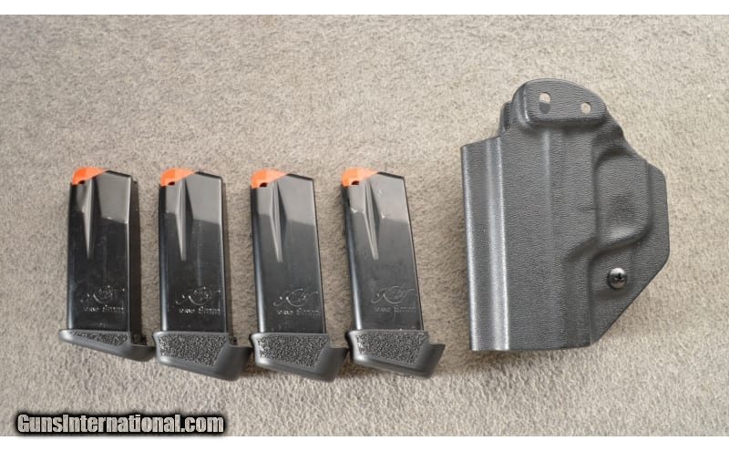 Description: Lightly used Kimber model R7 Mako is a semi auto pistol chambered in 9mm. This Kimber has ambidextrous magazine release, night sights, a 3.5" barrel, and the side is cut for an optics. Comes with the original Kimber soft carry case, cable lock, 4 (10 + 3), extended round, 1 (10) round magazines, and a holster. 9mm Luger SOLD Chambers: Semi auto. Metal Condition: 99%. Wood Condition: The polymer frame rates about 99%. Bore Condition: Excellent bore. Barrels: 3.5" barrel. Triggers: Single trigger. Sights: TruGlo Tritium Pro night sights. Item Location: Owatonna, MN |