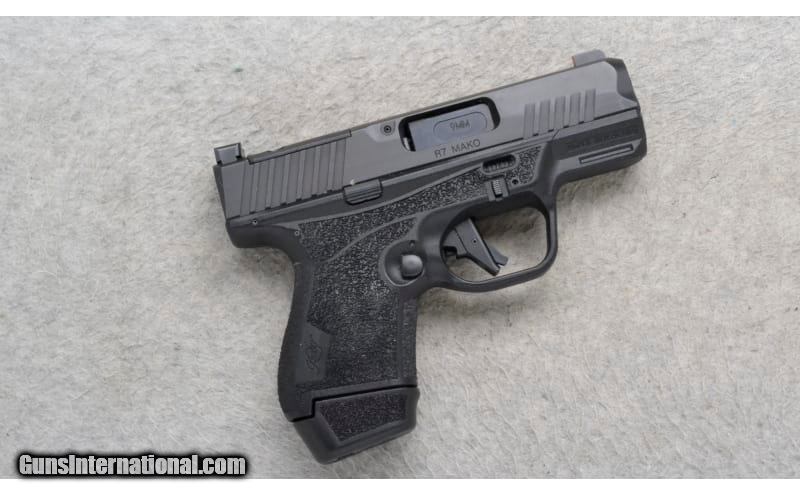 Description: This Kimber Model R7 Mako is a right hand semi-auto pistol in 9mm Cal. It has a 3.5 inch barrel with a front and rear serrated slide. A blade front sight and notch rear sight with luminous sight dots. The grip is a textured black polymer. It has a lower accessory rail. 9mm Parabellum SOLD Chambers: 10 round magazine. Metal Condition: Excellent. Bore Condition: Excellent. Barrels: 3.5 inch barrel with a front and rear serrated slide. Weight: 20 oz. Sights: Blade front. Notch rear. Luminous sight dots. Item Location: Richfield, WI |
