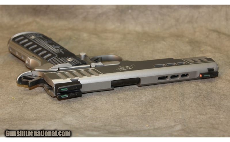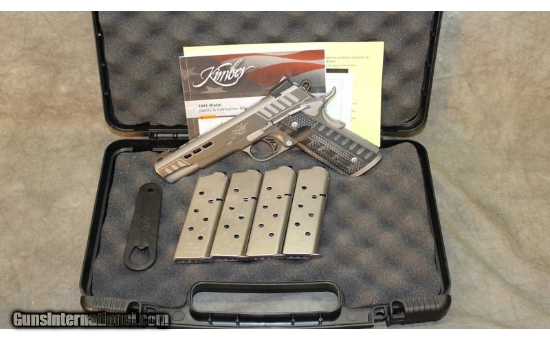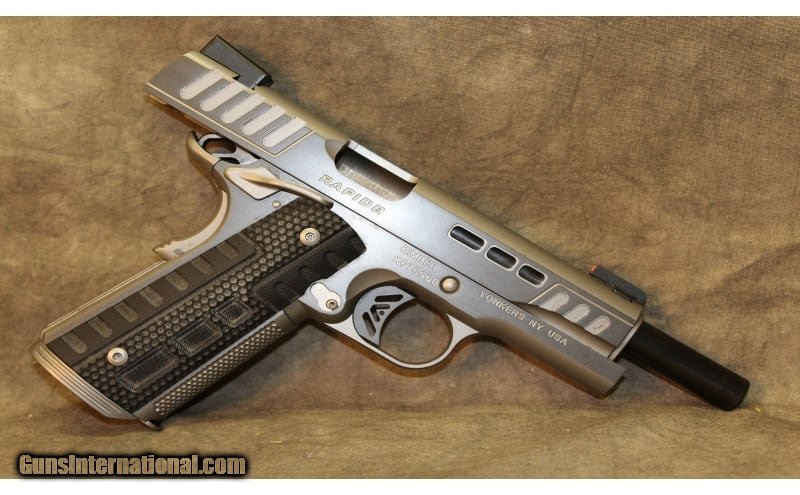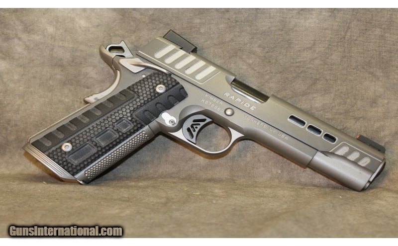 Description: This Kimber Rapide .45 acp is in outstanding condition. There is not a scratch or mark on this gun. It comes with three extra 8 round magazines, manual, and factory hard case. Very nice looking gun and setup for a good price. .45 ACP SOLD Chambers: .45 ACP with 8 round magazine Metal Condition: Excellent Bore Condition: Excellent Barrels: 5" Ported Triggers: Adjustable Weight: 38 oz Item Location: Grapevine, TX |