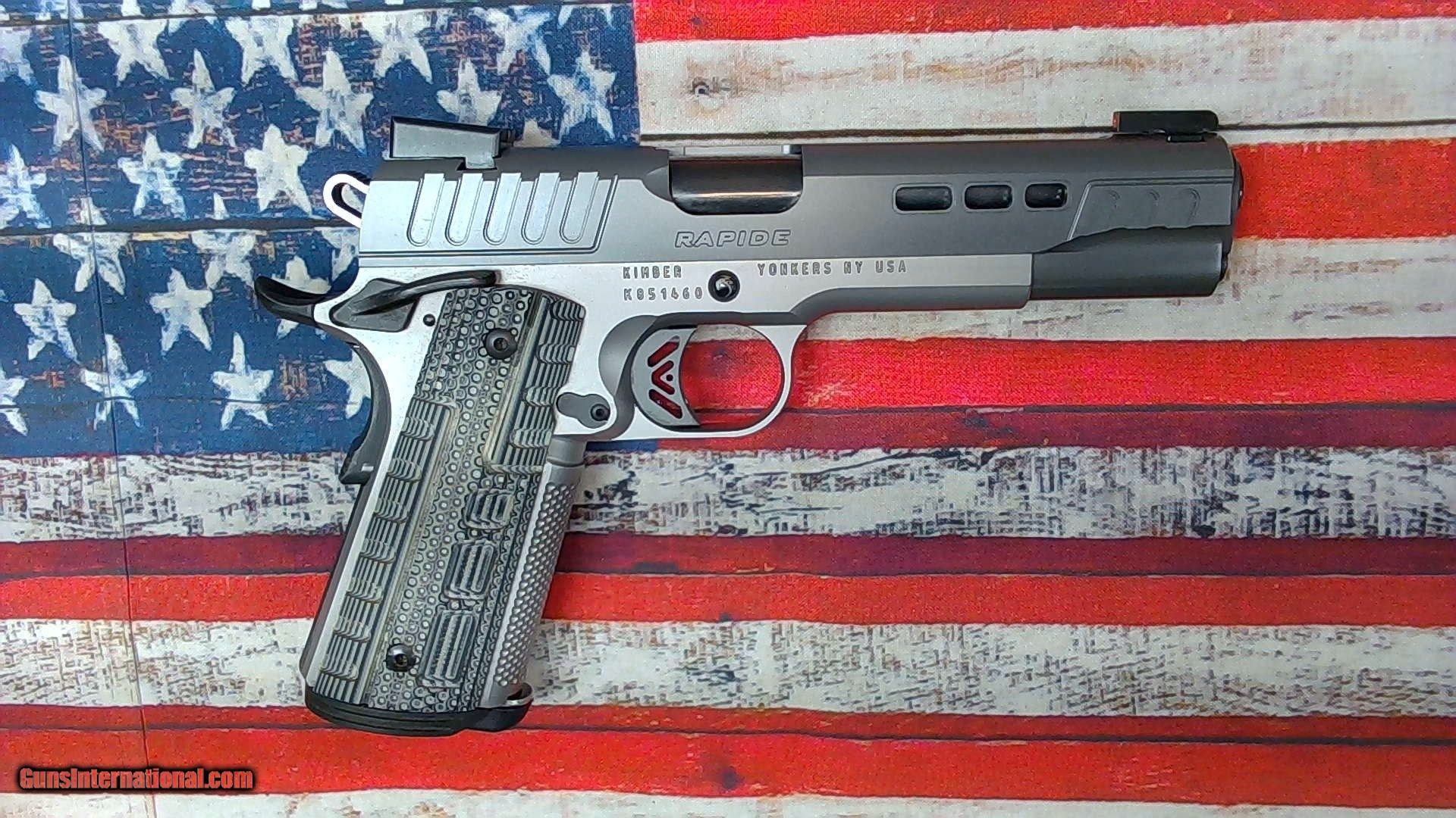 Description: Guns Listing ID: 764774 Excellent condition! This is a beautiful Kimber, and we‚‚re offerring it with two additional Wilson Combat magazines! You don‚‚t want to pass this one up! The Kimber Rapide Two-Tone 1911 handgun delivers strength and durability in a lightweight and rugged design. Features include day/night sights with high contrast orange ring front sight, G10 WavZ grips, stepped cocking serrations, and more. It comes chambered in .45 ACP with a 5 inch barrel and 8 round capacity. Brand: Kimber Barrel Length: 5\" Finish: Two Tone Model: Rapide Caliber Gauge: 45 Capacity: 8 SOLD Manufacturer: KIMBER Model: Rapide Caliber Info: .45 ACP Condition: Used - Non-Certified Barrels: 5 BARREL Finish: TWO-TONE |