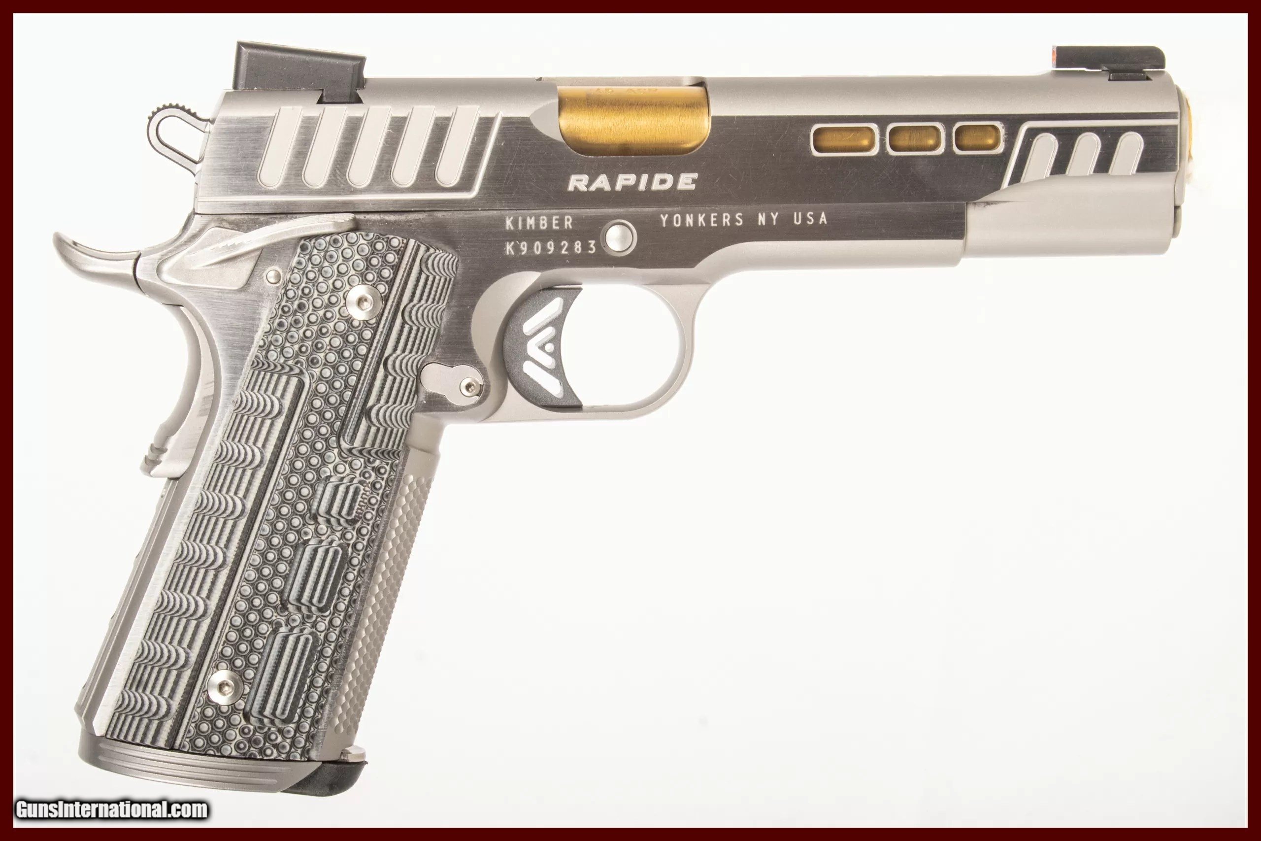 Description: Kimber Rapide chambered in 45ACP with a 5 inch barrel, bright & shiny bore, case and one extra magazine. The NRA grading condition for this USED firearm is Excellent. We ship domestically in the United States. Additional shipping rates apply to Alaska and Hawaii. Dury's Lifetime Warranty: All firearms purchased from Dury’s Gun Shop, NEW or USED, are covered by a lifetime warranty. We will repair or replace, at our discretion, any firearm purchased from Dury’s Gun Shop, Inc. for as long as it is owned by the purchaser. This warranty is not transferable. WE BUY GUNS! NO COLLECTION TOO BIG OR SMALL FOR OUR GUNS INTERNATIONAL CUSTOMERS ALL OF OUR FIREARMS CAN BE PURCHASED DIRECTLY FROM OUR DURY'S GUNS SITE ! SOLD Manufacturer: Kimber Model: RAPIDE 1911 Caliber Info: 45 ACP Barrels: 5inches |