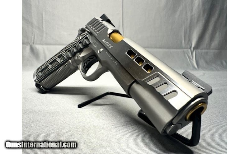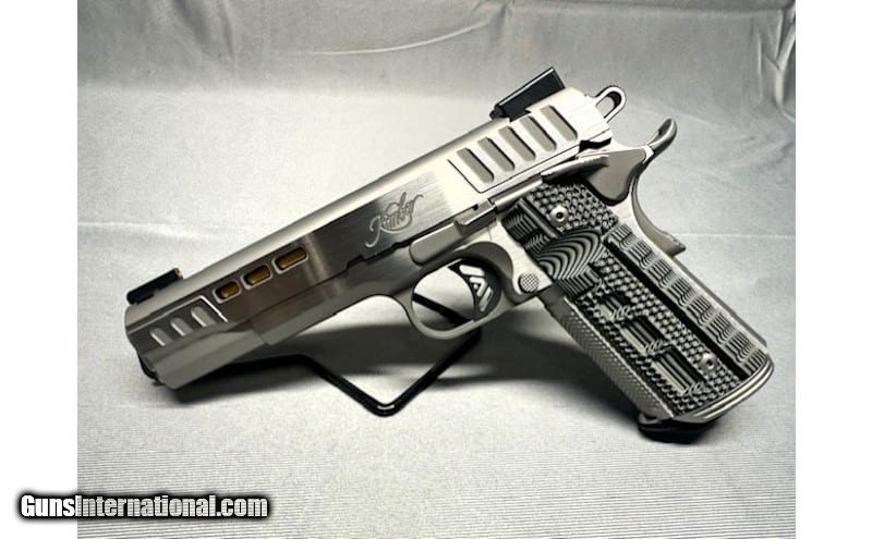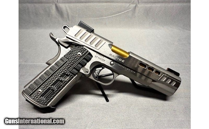 Description: The RAPIDE Dawn. A truly unique 1911 with stepped cocking serrations, slide lightening cuts for faster Slide lock-up and TiN coated barrel for extreme durability. Equipped with Kimber Stiplex TM front strap stippling and Gray/Black G10 Rapide patterned grips for extra griping confidence. Kimpro Silver finish with brush polished flats finish off the stunning looks. Kimber builds the world's finest 1911 pistols right here in America—something that makes sense, as few things are as American as a 1911 .45 ACP, or 10MM 1911. Virtually every critical component of every pistol is manufactured inside the Kimber factory. The finest raw materials come through the front gate and Kimber does the rest, the only way to ensure that every part meets unequaled standards. 10mm Auto SOLD Barrels: 5 Weight: 3 lbs Item Location: Spring, TX |