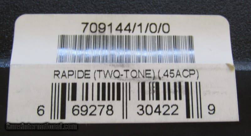 Description: Guns Listing ID: 647207 Up for sale is a lightly used Kimber Rapide 1911 Pistol (.45 ACP). This item has a 5” barrel with a shiny bore, TruGlo fiber optic / night sights and laminate wood stocks. The metal finish is in nice shape with no visible scratches or wear. Comes in the original box with the bushing wrench and two magazines. SOLD Manufacturer: KIMBER Model: RAPIDE Caliber Info: .45 ACP Condition: Used - Non-Certified Barrels: 5" barrel Finish: TWO-TONE |