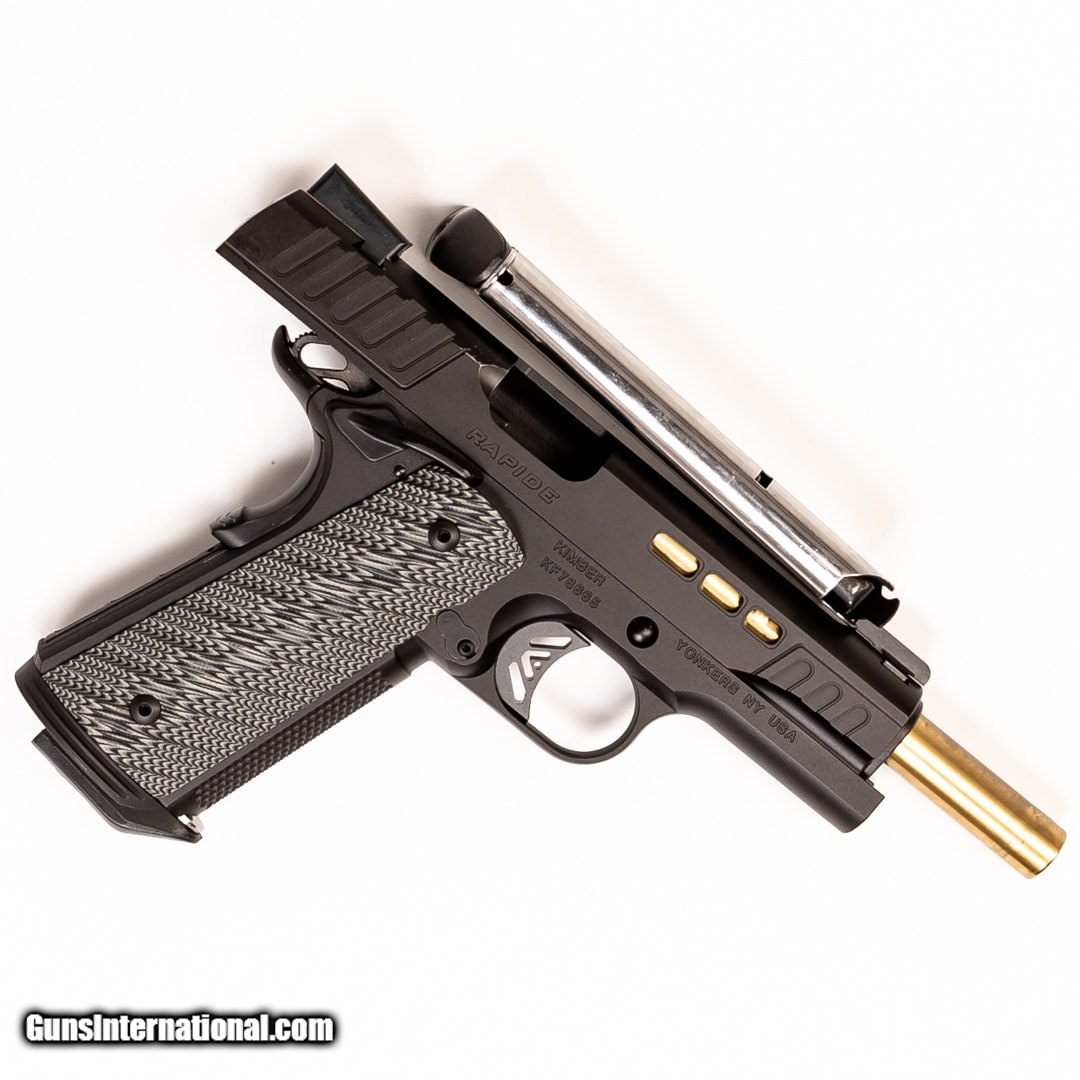 Description: Guns Listing ID: 432810 The Kimber Rapide is a premium-quality 1911 chambered in the devastating 10mm cartridge. It features a match grade barrel and easy to pick up day/night sights. 2-8 round magazines, the original case, and a manual are included. There is a little bit of wear by the ejection port. SOLD Manufacturer: KIMBER Model: RAPIDE Caliber Info: 10MM Condition: Used - Certified Barrels: 5 BARREL Finish: BLACK |