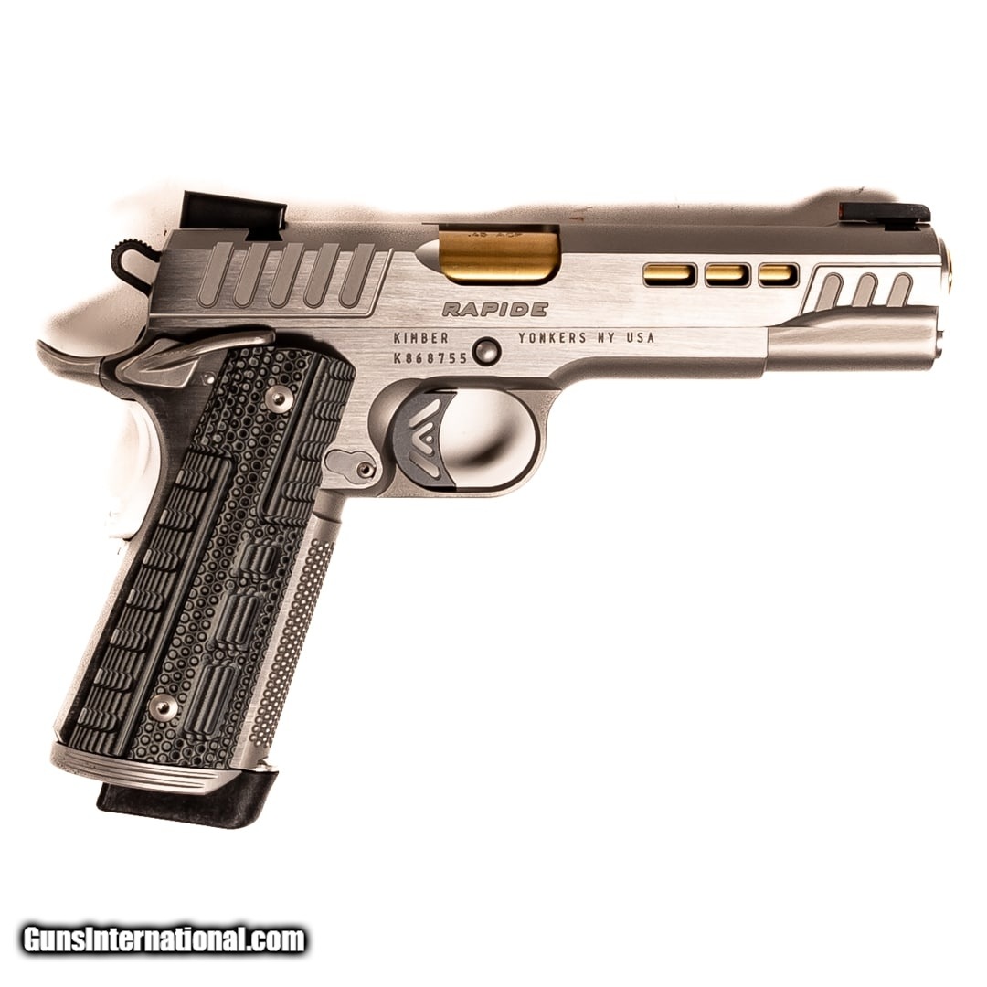 Description: Guns Listing ID: 702565 The Kimber Rapide offers rock-solid performance with style & class. It‚‚s a fantastic pistol for competition use, precision target shooting, and self-defense. This Rapide Dawn features Hi-Viz TG-HE night sights and includes the original case, manual, one 8-round magazine, and a bushing tool. Get the best bang for your buck when you get a Certified Used Firearm . When you see the Certified Used stamp on any of our firearms, you can be confident that you’re getting exactly what you want – a gun only in very good to excellent condition and held to the highest quality standard. All Certified Used Guns come with a ‘no questions asked’ return policy . PLUS, ALL CERTIFIED USED GUNS SHIP FREE SOLD Manufacturer: KIMBER Model: RAPIDE Caliber Info: .45 ACP Condition: Used - Certified Barrels: 4.75 BARREL Finish: STAINLESS |