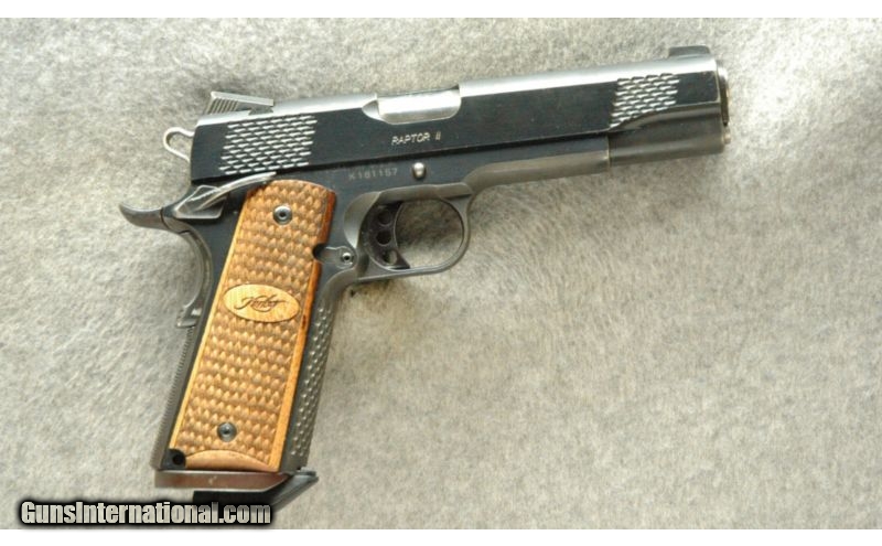 Description: SOLD Caliber Info: .45 ACP / .45 Auto Metal Condition: Very Good, Some Finish Wear, Nicks and Scratches from Handling and Use Wood Condition: Grips are Very Good Bore Condition: Bright Barrels: 5 Triggers: Single Action, Aluminum Trigger, Lightweight Hammer, Extended Grip Safety & Ambi Safety Levers Stock: Kimber Raptor Wood Grip Panels Weight: 2 Lbs 8 ozs Sights: Iron with Night Sight Inserts Extras: With one mag, no box Item Location: La Vista, NE |