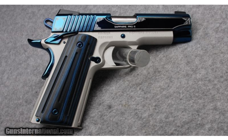 Description: This is a New in the Box Kimber Sapphire Pro II pistol in 9 mm. Other than the Kimber factory test, this pistol has not been fired. SOLD Caliber Info: 9mm Metal Condition: New in box. Bore Condition: New in box. Barrels: 4 Triggers: Solid Aluminum, Match Grade Sights: Tactical Wedge Night Sights, Fixed Extras: New pistol in the Kimber factory box Item Location: Reno, NV |
