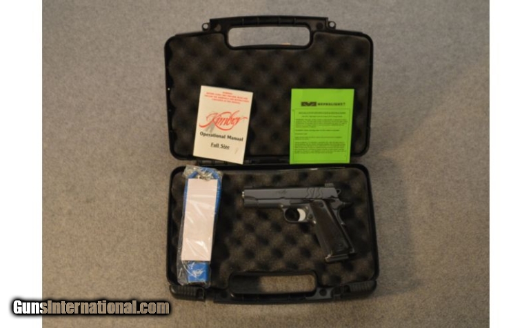 Description: This is a pre-owned Kimber SIS Pro in .45 ACP with a 4” barrel. It features a stainless steel slide, frame, and serrated mainspring housing, and SIS Meprolight night sights with a cocking shoulder, skeletonized hammer, aluminum match grade trigger, special SIS slide serrations, gray KimPro II finish, beavertail grip safety, ambidextrous thumb safety, and stippled black laminate Kimber logo grips. This pistol is in excellent condition with 1 small scratch on the right side of the slide. SOLD Caliber Info: .45 ACP Metal Condition: Excellent condition with 1 small scratch. Wood Condition: Excellent condition. Bore Condition: Clean with bright lands. Barrels: 4” Triggers: Aluminum match grade trigger. Stock: Stippled black laminate Kimber logo grips. Weight: 2 ½ lbs. Sights: Meprolight night sights with cocking shoulder. Extras: Comes with the factory case, manual, padlock, and 1 factory 8 round magazine. Item Location: Glendale, AZ |