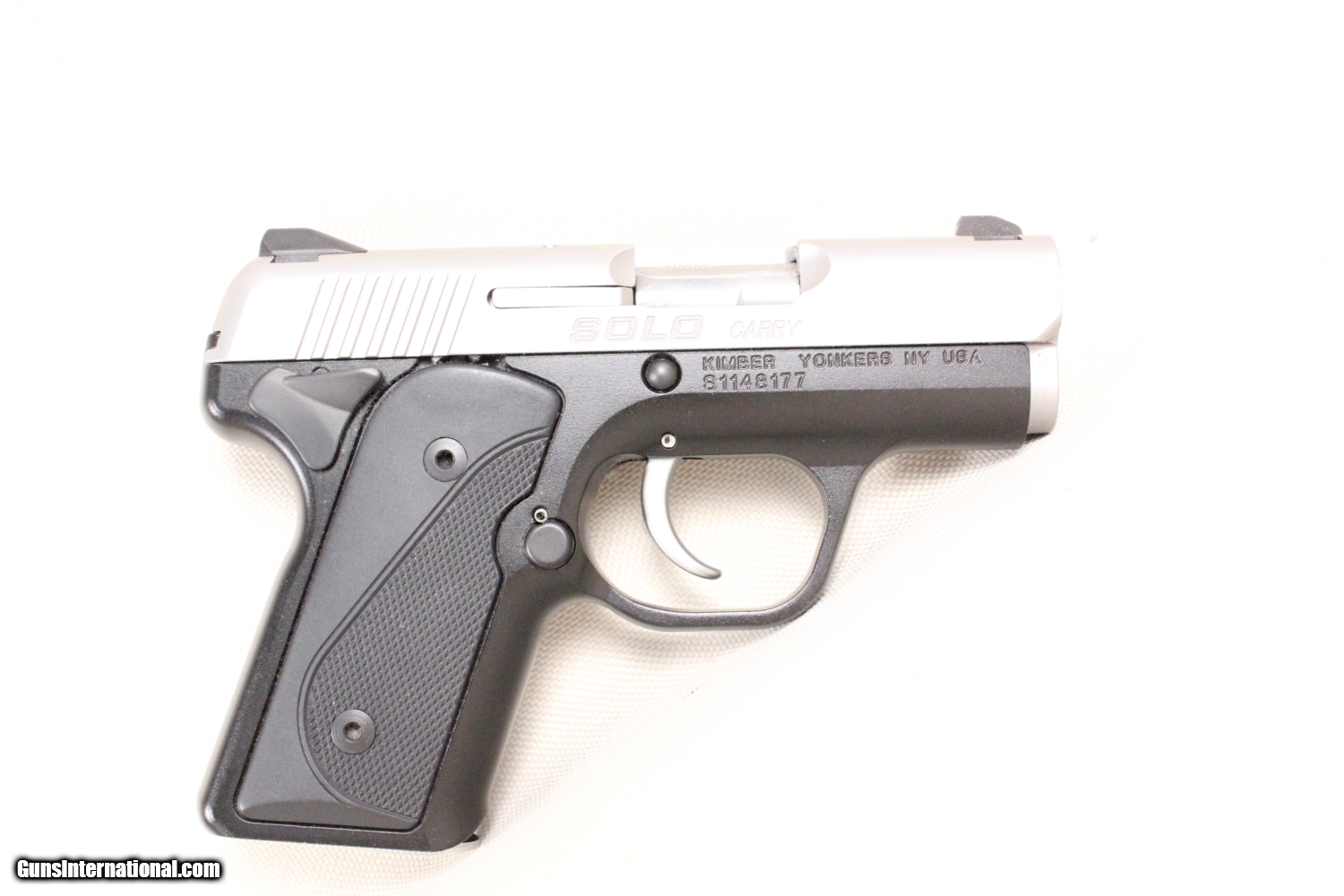 Description: “ KIMBER SOLO CARRY 9MM SOLD Manufacturer: checkered plastic grips Model: box and extra magazine. This gun is in excellent condition and is covered by Dury's L Caliber Info: $679.99 Bore: Kimber Chambers: 0 Ejectors: 3 INCHES Barrels: SOLO CARRY Barrel Type: 9MM |