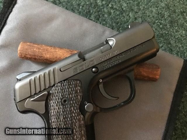 Description: Kimber, Solo Carry DC, 9mm, 2.75" barrel length, factory night sights, grips are black/grey laminated and checkered, center fire pistol, 5 total magazines (three 6 shot and two 8 shot), with box and papers. Serial number is S1163029. For further information call John at 941-748-7318. SOLD |