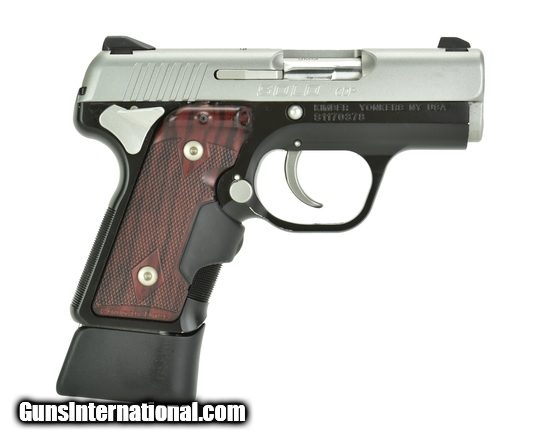 Description: Kimber Solo CDP 9mm caliber pistol. Two-tone pocket pistol with laser grips and box. Excellent condition.