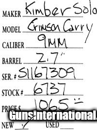 Description: Kimber Solo Crimson Carry 9mm SOLD Serial Number: S1167309 Barrels: 2.7 |