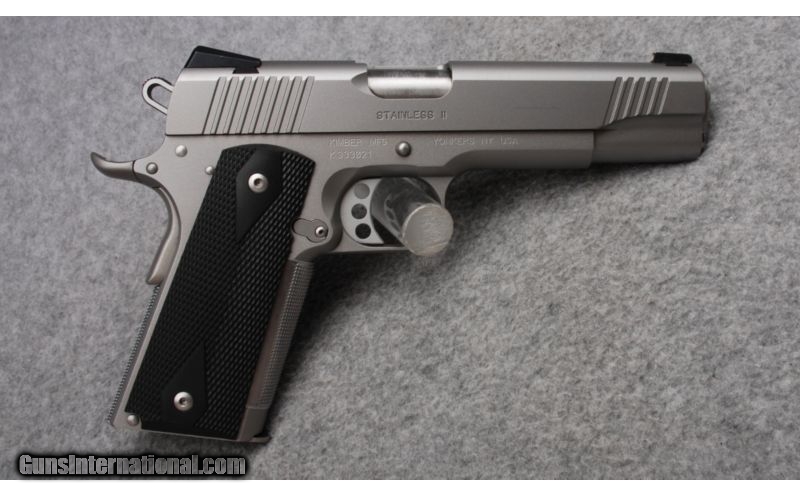 Description: This is a Kimber Stainless Custom II pistol in .45 ACP. It has Tritium night sights, a checkered front strap, and a full length guide rod. Condition is Excellent with a shiny bore. SOLD Caliber Info: .45 ACP Metal Condition: Excellent Bore Condition: Bright and Shiny Barrels: 5" Match Grade Triggers: SA Match Grade Aluminum Sights: Low Profile Tritium 3 Dot Night Sights Extras: Comes with box Item Location: Reno, NV |