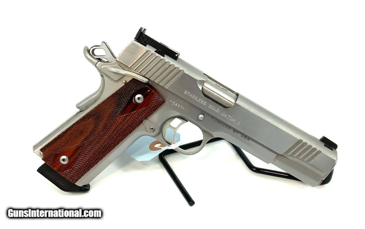 Description: Guns Listing ID: 431933 This used kimber 1911 is a beautiful gun with adjustable rear sights. SOLD Manufacturer: KIMBER Model: STAINLESS GOLD MATCH II Caliber Info: .45 ACP Condition: Used - Non-Certified Barrels: 5 BARREL Finish: STAINLESS |