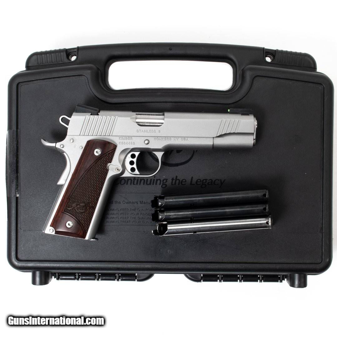 Description: Guns Listing ID: 576317 This Kimber Stainless II features a thumb safety and TruGlo Hi-Viz night sights. Purchase includes the original case, manual, two 7-round magazines, two 8-round magazines, and a bushing tool. Get the best bang for your buck when you get a Certified Used Firearm . When you see the Certified Used stamp on any of our firearms, you can be confident that you‚re getting exactly what you want – a gun only in very good to excellent condition and held to the highest quality standard. All Certified Used Guns come with a ‚no questions asked‚ return policy . SOLD Manufacturer: KIMBER Model: STAINLESS II Caliber Info: .45 ACP Condition: Used - Certified Barrels: 5.00" BARREL Action: SEMI AUTOMATIC Finish: stainless Weight: 2.4 |