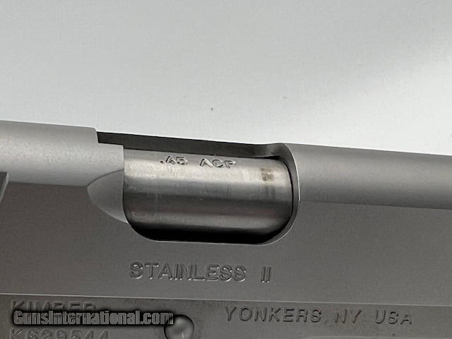 Description: Guns Listing ID: 555433 THIS IS A PREOWNED KIMBER STAINLESS II .45 ACP IN VERY GOOD CONDITION. IT COMES WITH THE ORIGINAL CASE AND 2 MAGAZINES. Cartridge : .45 ACP Barrel Length: 5.25\" Finish: Satin Silver Stock Color: Rosewood Round Capacity: 7 + 1 1602746 BMM DC Manufacturer: KIMBER Model: STAINLESS II Caliber Info: .45 ACP Condition: Used - Non-Certified Barrels: 5" BARREL Action: SINGLE SHOT Finish: SATIN WITH ROSEWOOD Weight: 2.3 lbs. Price: $799.99 Contact Seller |