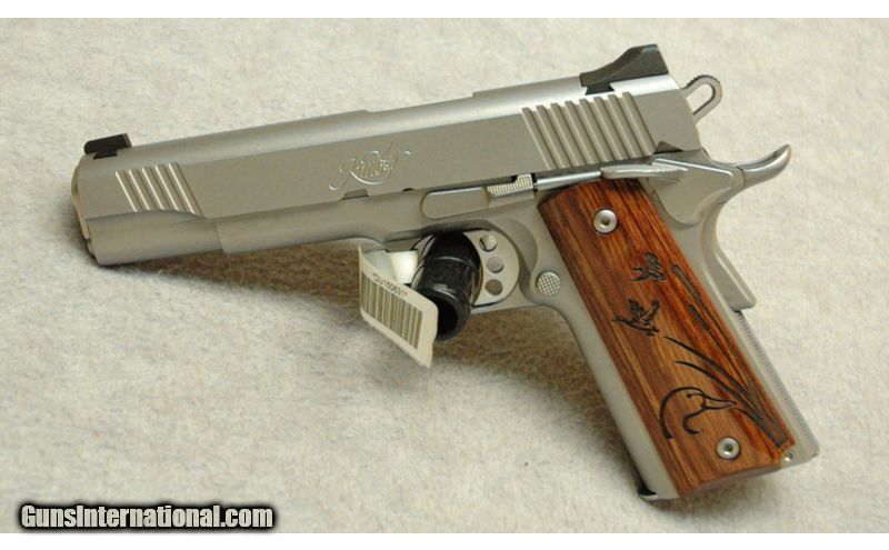 Description: Kimber Stainless ii Pistol, .45 Auto. Appears as new with one mag and hard case. Single action aluminum trigger, extended safety lever and grip safety, lightweight hammer. A great choice for target practice, handgun competition matches or home defense. .45 Auto SOLD Chambers: Semi auto Metal Condition: Appears as new Bore Condition: Bright Barrels: 5 Triggers: Single action Butt Pad: Wood grips Sights: Iron sights Item Location: La Vista, NE |
