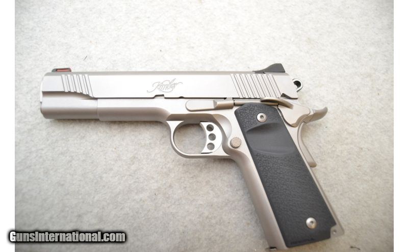 Description: This example of a Kimber 1911 is in overall excellent condition; almost like new in box. With the exception of some use marks on the barrel the metal appears free of all but the tiniest of handling marks. The grips are in perfect shape as well. Even the bore on this pistol is in excellent shape with its bright shine and strong rifling. SOLD Caliber Info: 9mm Chambers: Semi-automatic fed from detachable magazines. Metal Condition: Very good to excellent. Wood Condition: Grips are in excellent condition. Bore Condition: Excellent. Barrels: 5" Match grade stainless steel with match grade bushing. Triggers: Skeletal match grade aluminum with grooved surface. Stock: Gray Magpul grips. Weight: 38oz Sights: Fixed low profile orange fiber optic front sights and notch rear. Extras: The factory case in included. Item Location: Green Bay, WI |