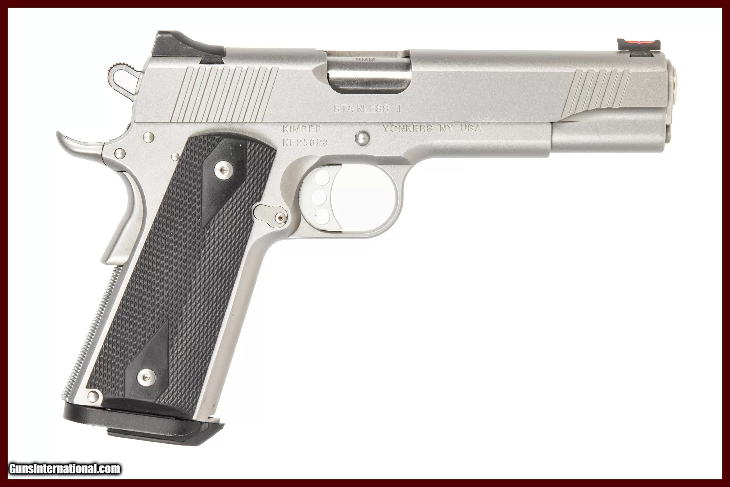 Description: Kimber Stainless II chambered in 9 millimeter with a 5 inch barrel, mirror-shine bore with immaculate rifling. This pistol comes with a case and 2 extra magazines. The NRA grading condition for this USED firearm is Excellent. We ship domestically in the United States. Additional shipping rates apply to Alaska and Hawaii. Dury's Lifetime Warranty: All firearms purchased from Dury’s Gun Shop, NEW or USED, are covered by a lifetime warranty. We will repair or replace, at our discretion, any firearm purchased from Dury’s Gun Shop, Inc. for as long as it is owned by the purchaser. This warranty is not transferable. WE BUY GUNS! NO COLLECTION TOO BIG OR SMALL FOR OUR GUNS INTERNATIONAL CUSTOMERS ALL OF OUR FIREARMS CAN BE PURCHASED DIRECTLY FROM OUR DURY'S GUNS SITE ! SOLD Manufacturer: Kimber Model: Stainless II Caliber Info: 9 mm Barrels: 5inches |