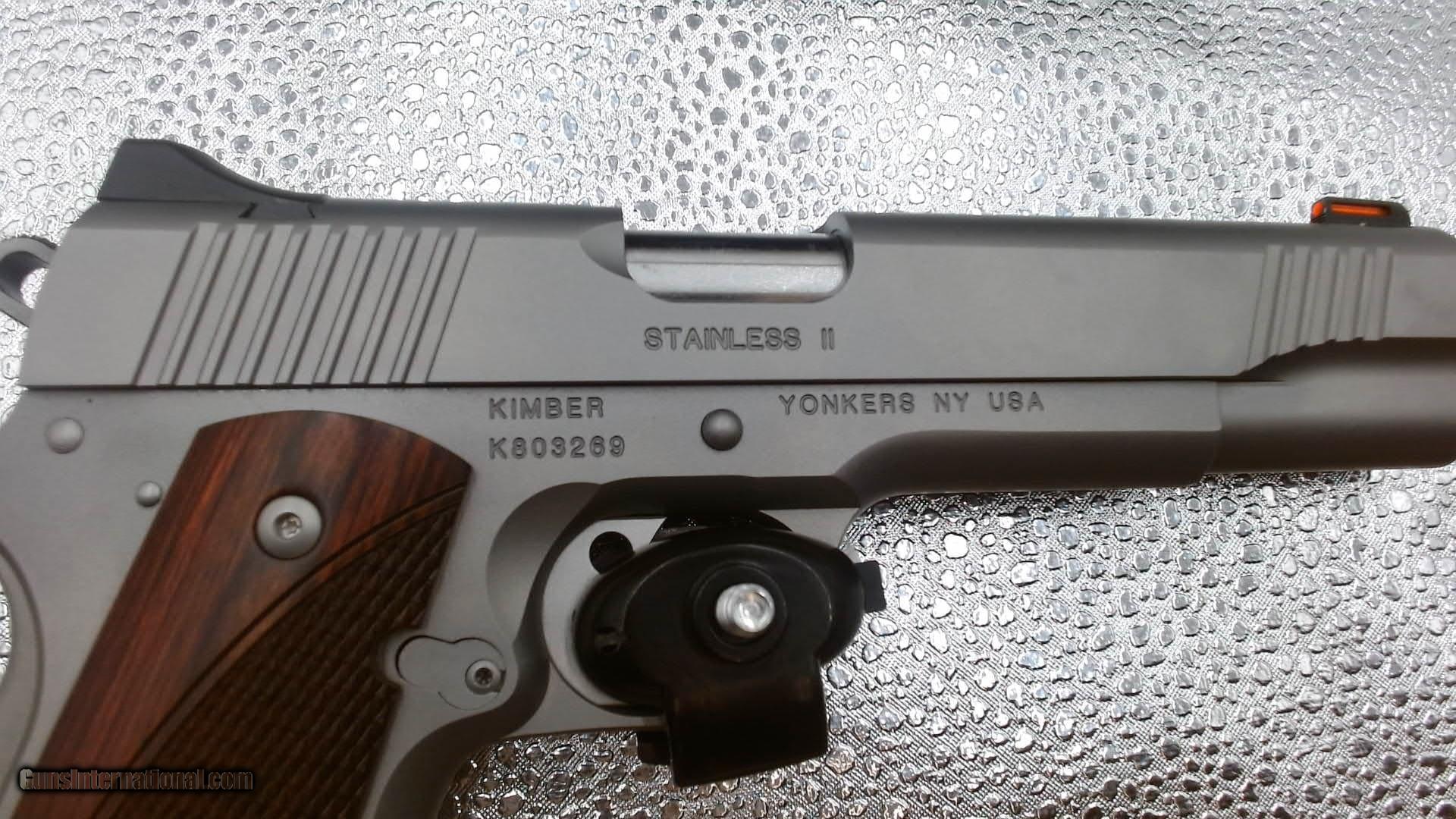 Description: Guns Listing ID: 523037 VERY GOOD CONDITION KIMBER STAINLESS II .45 ACP WITH ORIGINAL CASE, 1 MAG SOLD Manufacturer: KIMBER Model: STAINLESS II Caliber Info: .45 ACP Condition: Used - Non-Certified Barrels: 5 BARREL Finish: STAINLESS |