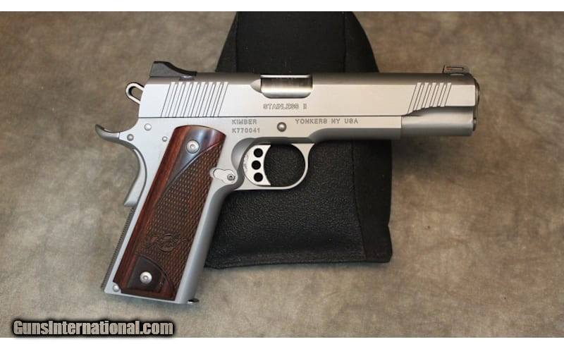 Description: This Kimber Stainless II is in excellent condition. It comes with the manufacturers box, one Kimber 7 round magazine, one Kimber 10 Round magazine, three Wilson Combat 10 round magazines a De Santis leather Thumb Break Scabbard and a magazine holder. It should make a very nice carry or home defense gun. .45 ACP Chambers: .45 ACP Metal Condition: Excellent Wood Condition: "Rosewood with Kimber logo, excellent condition Bore Condition: Excellent Barrels: 5 Triggers: SA Weight: 38 oz Sights: "Black notch rear, red fiber optic front Item Location: Columbia, MO Price: $799.99 Contact Seller |