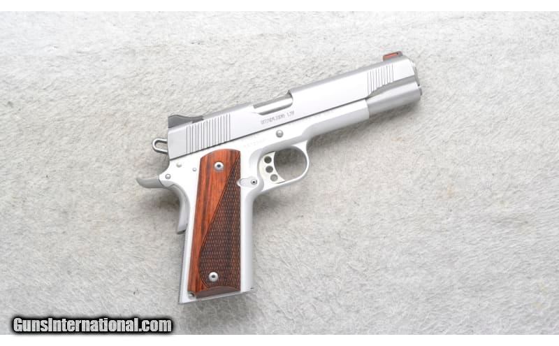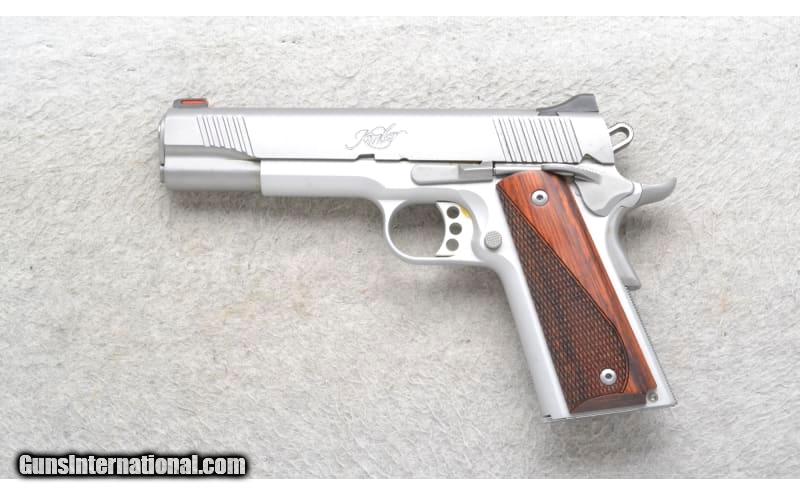 Description: This Kimber Model Stainless LW is a right hand stainless steel semi-auto pistol in .45 ACP Cal. It has a 5 inch barrel with a front and rear serrated slide. A red high visibility front sight and a notch rear sight with white sight dots. The grip panels are a checkered and smooth rosewood. It has an adjustable, grooved 3 hole trigger. .45 ACP SOLD Chambers: 8 round magazine. Metal Condition: Good. Has a little very fine freckling starting. Wood Condition: Excellent. Bore Condition: Excellent. Barrels: 5 inch barrel with a front and rear serrated slide. Triggers: Adjustable. Grooved. 3 hole. Weight: 32 oz. Sights: Red high visibility front. Notch rear with white sight dots. Item Location: Richfield, WI |