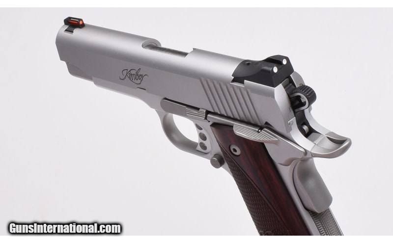 Description: Full sized alloy frame, stainless slide, 4 barrel and full length guide rod, Rosewood grips with Kimber logo. Pre-owned in excellent condition with makers soft-case and extra magazine. .45 ACP SOLD Metal Condition: Satin Silver Finish Wood Condition: Rosewood Bore Condition: "Bright, Sharp Barrels: 4 Inch Match Grade Triggers: Single Action Auto Weight: 31 oz Sights: "Fixed Low Profile, Fiber Optic Front Item Location: Buda, TX |
