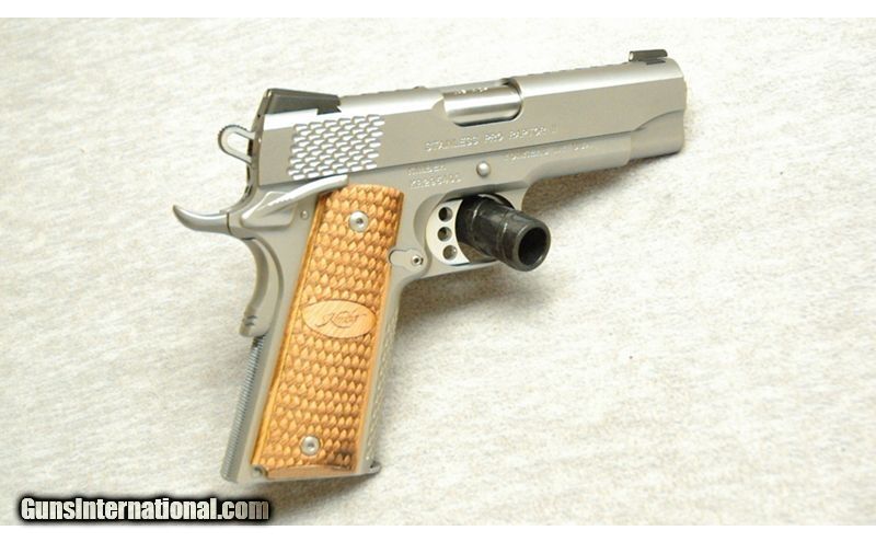 Description: Kimper Stainless Raptor Pro Pistol. Appears as new with one mag and box. Well optioned single action semi auto .45 pistol. Aluminum trigger, lightweight hammer, extended saftey lever and grip safety and scalloped front strap. Factory Raptor wood grips, iron sights and heavy bull barrel. .45 Auto SOLD Chambers: Semi auto Metal Condition: As new Wood Condition: Grips are as new Bore Condition: Bright Barrels: 4 Triggers: Single action Butt Pad: Factory wood grips Sights: Night sights Item Location: La Vista, NE |