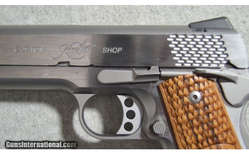 Description: This pistol comes with a standard case. .45 Auto SOLD Metal Condition: Good with minor scuffs and handling marks Wood Condition: Very good with minor wear and handling marks Bore Condition: Bright and clear with good rifling Barrels: 5 inches Butt Pad: Zebrawood grips with scale pattern and Kimber log Weight: 2 lbs 6 ozs Sights: Tactical Wedge 3-dot tritium night sights Item Location: Fort Worth, TX |