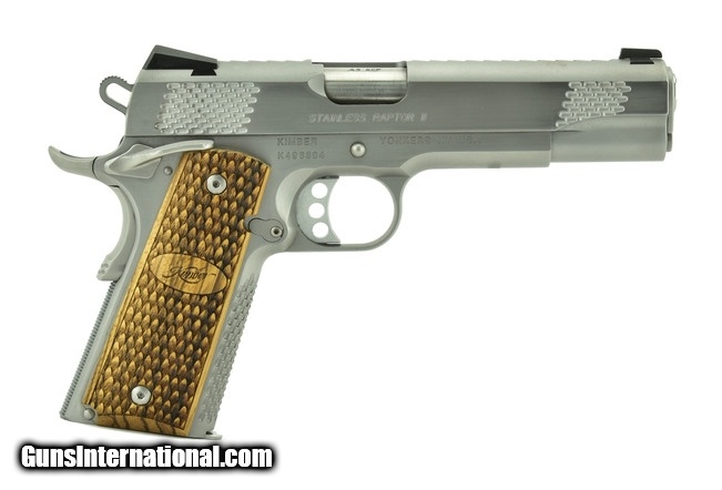 Kimber Stainless Raptor II .45 ACP caliber pistol. Full size model with wood grips stainless finish with box. Excellent condition.
