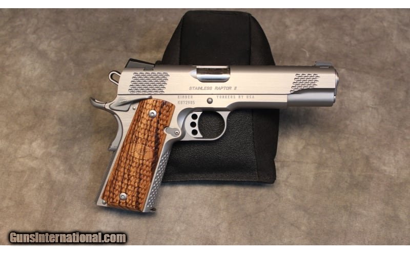 Description: This Kimber Stainless Raptor is in overall excellent condition. It would make a great home defense or carry gun. .45 ACP SOLD Chambers: .45 ACP Metal Condition: Excellent Wood Condition: Excellent Bore Condition: Excellent Barrels: 5 Weight: 38 oz Sights: 3 dot tritium Item Location: Columbia, MO |