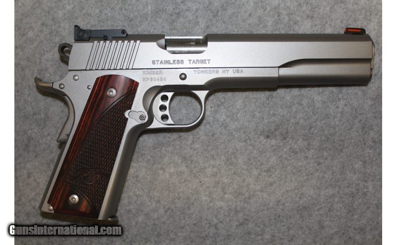 Description: Kimber is known for producing some of the highest quality 1911's available on the market, and the Kimber Stainless Target Long Slide is no exception. This 10mm 1911 features a 6-inch slide and barrel that were milled from solid stainless steel to critical match-grade dimensions. The Stainless Target also features adjustable fiber-optic sights, and an aluminum trigger set to 4.0 to 5.0 pounds. In addition to being an ultra-utilitarian handgun, the Stainless Target Long Slide sports an elegant appearance with checkered rosewood grips and a Satin Silver slide and frame finish. 10mm Auto SOLD Barrels: 6 in Triggers: Adjustable Skeletonized Weight: 2.6 lbs Sights: Front Red Fiber Optic/Blacked Adjustable Square Notch Rear Item Location: Farmington, UT |