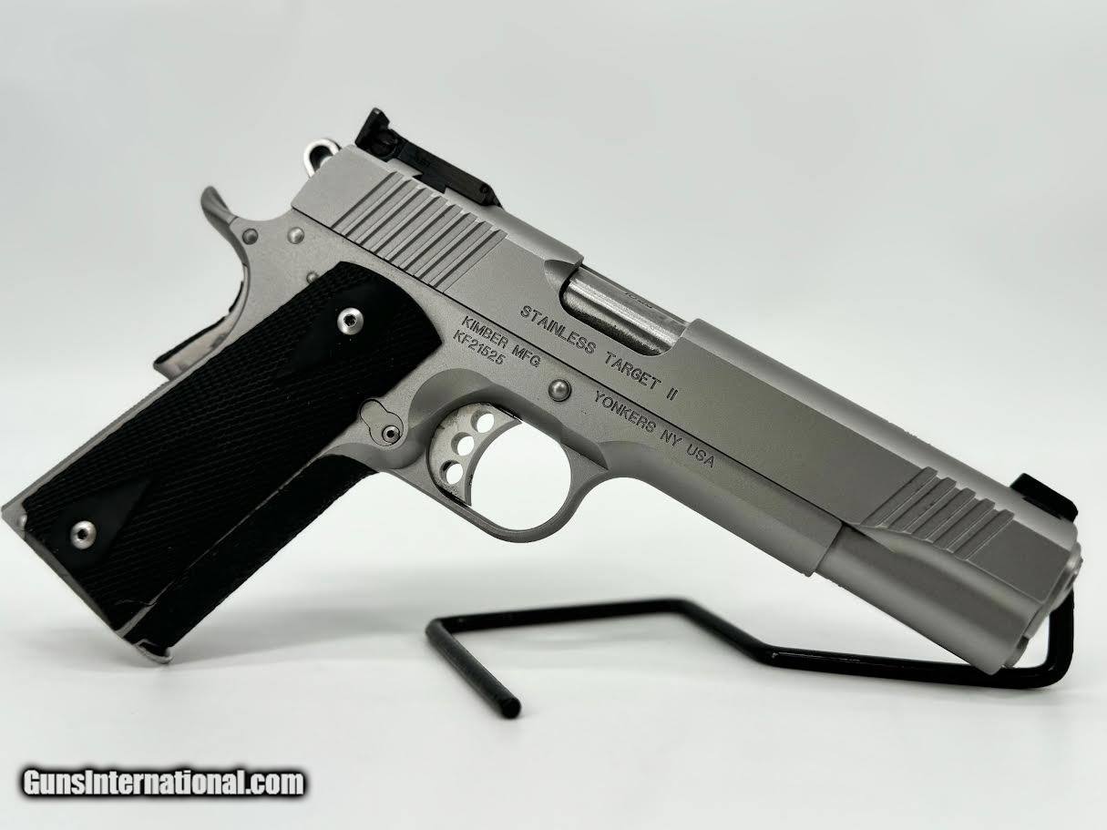 Description: Guns Listing ID: 533655 Kimber Stainless Target II chambered in 10mm Auto – a powerful and precision-crafted 1911-style pistol ideal for hunting, target shooting, or personal defense. Known for its accuracy and quality fit and finish, this model is built with a match-grade 5" barrel, full-length guide rod, and an adjustable rear target sight for dialing in your shot. The pistol features a brushed stainless steel frame and slide, black synthetic double-diamond grips, and a crisp single-action trigger. Chambered in 10mm, it offers hard-hitting performance in a sleek and refined 1911 platform. In very good overall condition and in perfect working order. SOLD Manufacturer: KIMBER Model: STAINLESS TARGET II Caliber Info: 10MM Condition: Used - Non-Certified Barrels: 5 BARREL Action: SEMI AUTOMATIC Finish: stainless |